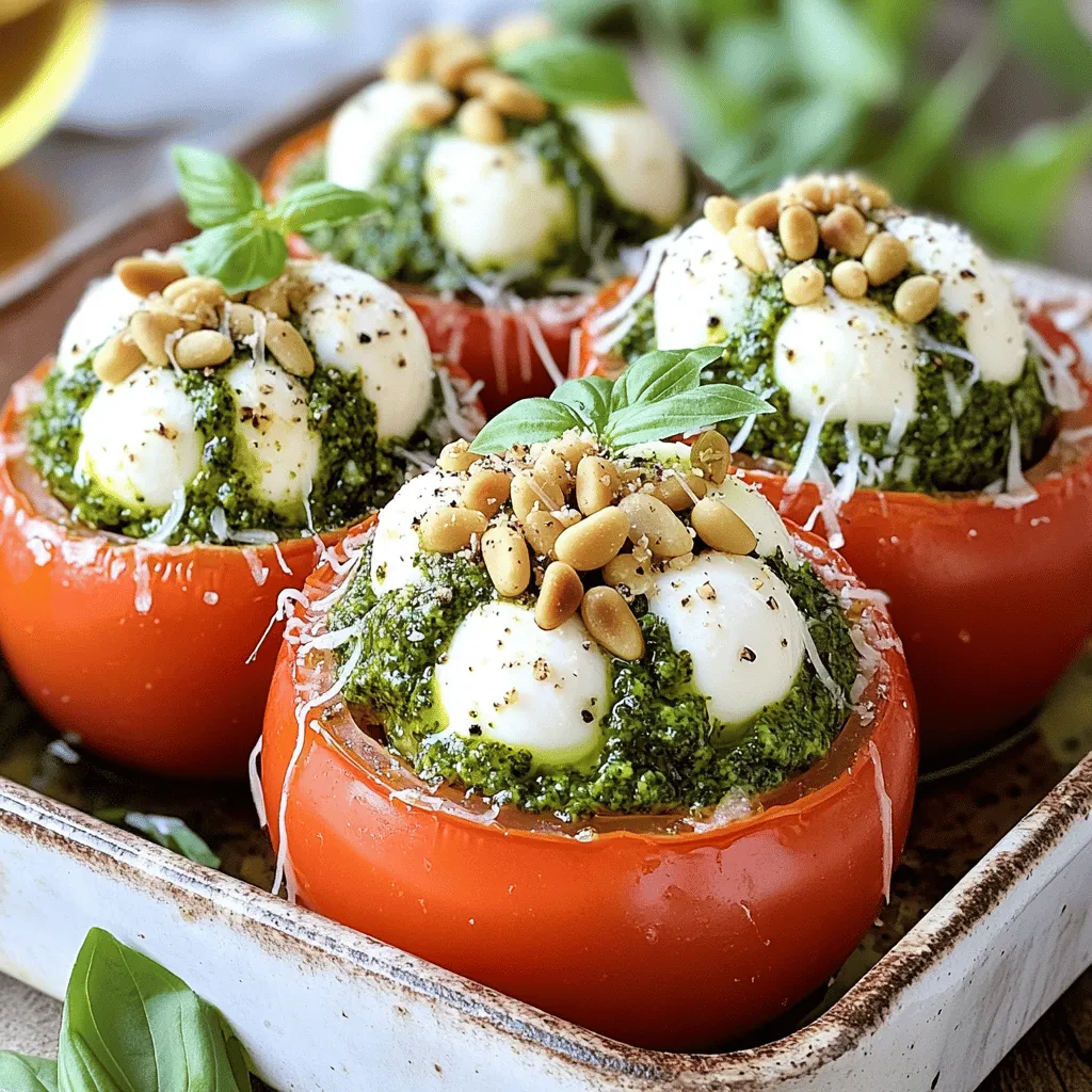 To boost the flavor of your pesto mozzarella stuffed tomatoes, try adding some spices or herbs. A pinch of red pepper flakes can add a nice kick. Fresh thyme or oregano can also give a lovely aroma to the dish. If you want a different texture, consider mixing in some finely chopped sun-dried tomatoes or even artichoke hearts. These additions can change the whole vibe of the dish while keeping it fresh.