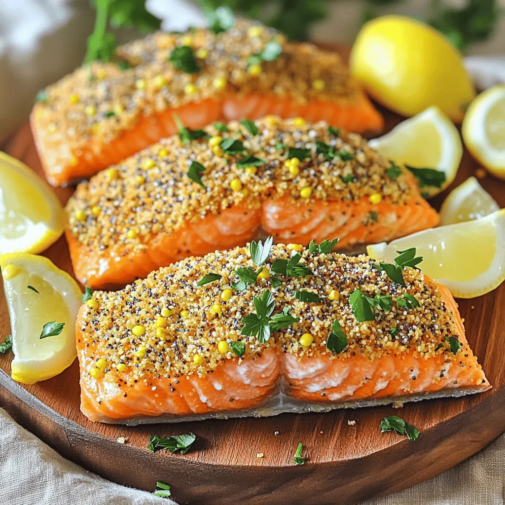 To get the best crust, start by drying your salmon well. This helps the coating stick. Use paper towels to soak up any extra moisture. This small step makes a big difference. After drying, season your fillets with salt and pepper. Then, brush on the Dijon mustard mix. The mustard acts like glue for the crust.