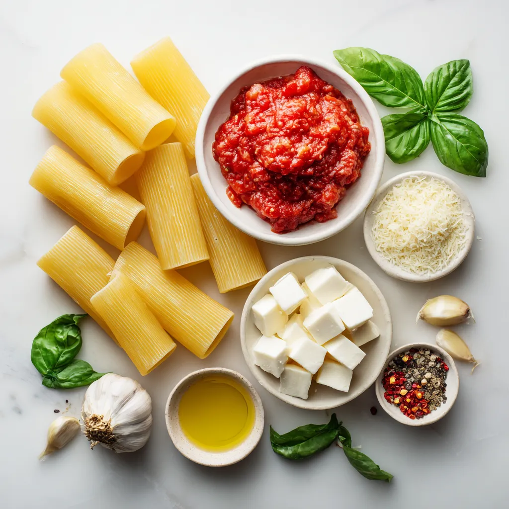Pasta is the star of this dish. You want to choose ziti or penne. They hold the sauce well. We use about 350 grams for four servings. Next, we need crushed tomatoes. You can use canned or fresh tomatoes. Either option gives a lovely flavor. Aim for 400 grams to make a rich base.