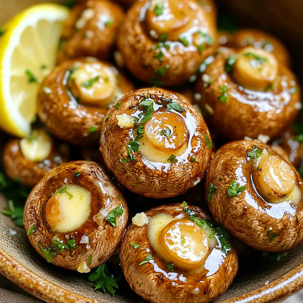 The main ingredients for this dish are simple yet flavorful. Button mushrooms shine here. They absorb the rich garlic butter mix well. The unsalted butter adds creaminess without extra salt. Fresh garlic gives a punch of taste. Parsley adds a fresh touch, while thyme brings depth. Don’t forget the salt and pepper. They balance the flavors perfectly. A splash of lemon juice brightens everything.