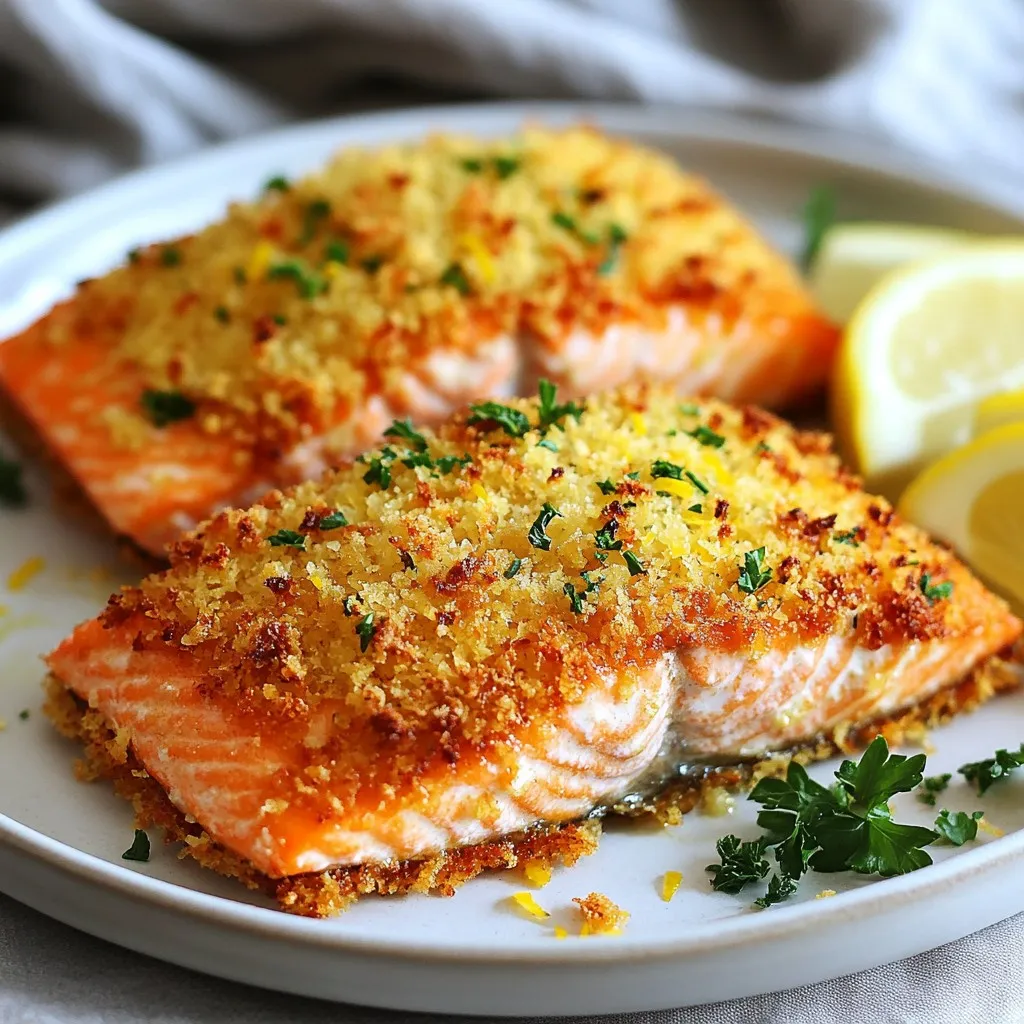 If you don’t have salmon, try using tilapia or trout. These fish work well with the crust. For a dairy-free option, use nutritional yeast instead of Parmesan. You can swap panko with regular breadcrumbs if needed. If you want a different herb, basil or dill can replace parsley. Use onion powder instead of garlic if you prefer. A sprinkle of cayenne pepper adds heat if you like spice.