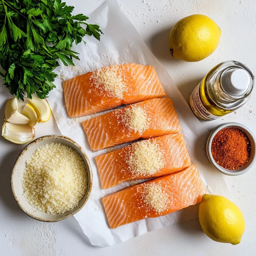 Salmon is rich in omega-3 fatty acids. These fats help your heart and brain. It also provides high-quality protein, keeping you full and strong. Parmesan cheese adds calcium for bones and teeth. Panko breadcrumbs give crunch without too many extra calories. Garlic boosts your immune system and adds flavor. Fresh parsley is full of vitamins A and C, which support your skin. Lemon zest gives a fresh taste and adds vitamin C. Smoked paprika brings antioxidants to your dish, too.