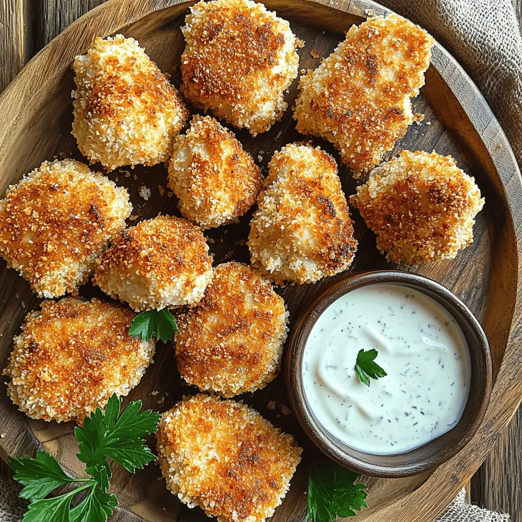 You can serve these nuggets with many tasty sides. Try crispy French fries or sweet potato fries. Fresh veggies like carrot sticks or cucumber slices pair well too. For a fun twist, add a side of coleslaw or a simple salad. Don’t forget some extra ranch dressing for dipping!