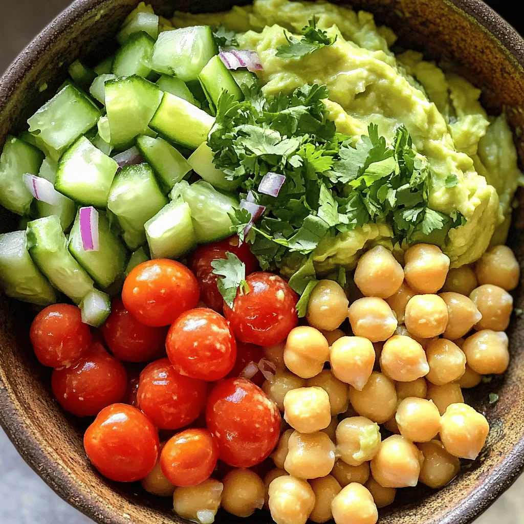 ![- 1 can (15 oz) chickpeas, thoroughly drained and rinsed - 1 perfectly ripe avocado, peeled and pitted - 1 cup cherry tomatoes, halved - 1 medium cucumber, diced - 1/4 red onion, finely chopped - 1/4 cup fresh cilantro, chopped - 2 tablespoons freshly squeezed lemon juice - 1 tablespoon high-quality olive oil - Sea salt and freshly ground black pepper - 1/4 teaspoon ground cumin - Extra herbs for garnish - Each serving has about 200 calories. - Key vitamins include vitamin C, vitamin K, and fiber. This avocado chickpea salad packs a punch of flavor and nutrients! You get protein from chickpeas, healthy fats from avocado, and lots of vitamins from fresh veggies. The combo is not just tasty; it is good for you too. Pair this salad with pita chips for a crunchy bite. For the full recipe, check out the [Full Recipe]. To start, you need to mash the avocado. Take a ripe avocado and cut it in half. Remove the pit and scoop the flesh into a bowl. Use a fork to mash it. You want it creamy but still chunky. This adds a nice texture to your salad. Next, mix in the chickpeas. Open a can of chickpeas, drain and rinse them well. Carefully add them to the mashed avocado. Gently fold the chickpeas into the avocado. Be careful not to mash them. You want to keep the chickpeas whole for great bites. Now it's time to add in your vegetables. Chop up one cup of cherry tomatoes in half, dice a cucumber, and finely chop a quarter of a red onion. Don’t forget the cilantro! Add all these colorful veggies to your bowl. Gently mix everything together until the ingredients are well combined and coated in avocado. Then, you’ll make the dressing. In a small bowl, whisk together two tablespoons of freshly squeezed lemon juice and one tablespoon of high-quality olive oil. Add sea salt and freshly ground black pepper to taste. If you like, you can add a quarter teaspoon of ground cumin for extra flavor. This dressing will brighten the salad and tie everything together nicely. Now, drizzle the dressing over the chickpea and avocado mixture. Toss the salad gently. Make sure each ingredient gets a nice coat of dressing. Taste the salad. If it needs more flavor, adjust your seasoning. You can add more salt or lemon juice if you want it brighter. For the best taste, serve your salad right away. If you have time, let it chill in the refrigerator for 15-20 minutes. This allows the flavors to mix well. Don’t forget to check out the Full Recipe for more details! To select ripe avocados, look for ones that yield slightly when pressed. They should feel soft but not mushy. If they are hard, leave them at room temperature for a few days. Once ripe, keep them in the fridge to slow down the ripening process. To store leftover salad, use an airtight container. This keeps the salad fresh for up to two days. If you notice browning from the avocado, add a bit more lemon juice to help keep it vibrant. For a tasty pairing, serve your salad with crispy pita chips. The crunch adds a fun texture. You can also enjoy it on toasted bread for a quick meal. To present the salad, use a colorful bowl. Garnish with extra cilantro for a lively look. A sprinkle of sea salt on top can enhance the visual appeal, too. One common mistake is over-mashing the avocado. You want a creamy yet chunky texture. This keeps the salad interesting. Another mistake is not seasoning adequately. Be sure to taste and adjust your salt and lemon juice. Proper seasoning brings out all the fresh flavors in this dish. {{image_4}} You can easily boost your avocado chickpea salad with protein. Here are two great options: - Grilled chicken or shrimp: Both add a delicious, savory flavor. Just grill them and slice them up before mixing in. - Tofu for a vegetarian option: Tofu is a great meat substitute. Use firm tofu, press it, and cube it. Then toss it in for added protein. Adding new flavors can make your salad even better. Try these ideas: - Adding feta cheese: Crumbled feta adds a tangy taste that pairs well with the creamy avocado. - Experimenting with different dressings: You can switch up the dressing to change the flavor. Try balsamic, ranch, or a spicy vinaigrette for a twist. Using fresh, seasonal ingredients makes your salad shine. Here are some tips: - Incorporating seasonal veggies: Add bell peppers, radishes, or zucchini when they are in season for extra crunch and flavor. - Switching up herbs for different flavors: Try basil, parsley, or dill instead of cilantro to give your salad a new taste. These variations can turn your avocado chickpea salad into a unique dish every time you make it. For the full recipe, check out the earlier section. To keep your salad fresh, store it in the fridge. Use an airtight container to seal in the flavors. This method helps prevent browning and keeps the salad crisp. If you have space, consider using glass containers. They do not absorb odors and help you see the salad clearly. This salad lasts about three days in the fridge. After that, the ingredients may start to spoil. Check for signs like brown avocado or a sour smell. If you see either, it’s best to toss the salad. Freshness is key to enjoying this dish. Can you freeze avocado chickpea salad? I do not recommend freezing it. The avocado and tomatoes do not freeze well. They can become mushy when thawed. If you want to freeze, store the chickpeas and veggies separately. This way, you can mix fresh ingredients when you’re ready to eat. To make your avocado chickpea salad creamy, mash the ripe avocado well. Use a fork for this step. Aim for a mix of smooth and chunky textures. This keeps it interesting. Combine the mashed avocado with chickpeas gently. Folding helps maintain the shape of the chickpeas. Also, add a drizzle of olive oil for extra creaminess. Finally, use fresh lemon juice to brighten the flavors. These steps ensure your salad has a rich, creamy base. Yes, you can prepare this salad in advance. Start by chopping all the vegetables and storing them separately. 