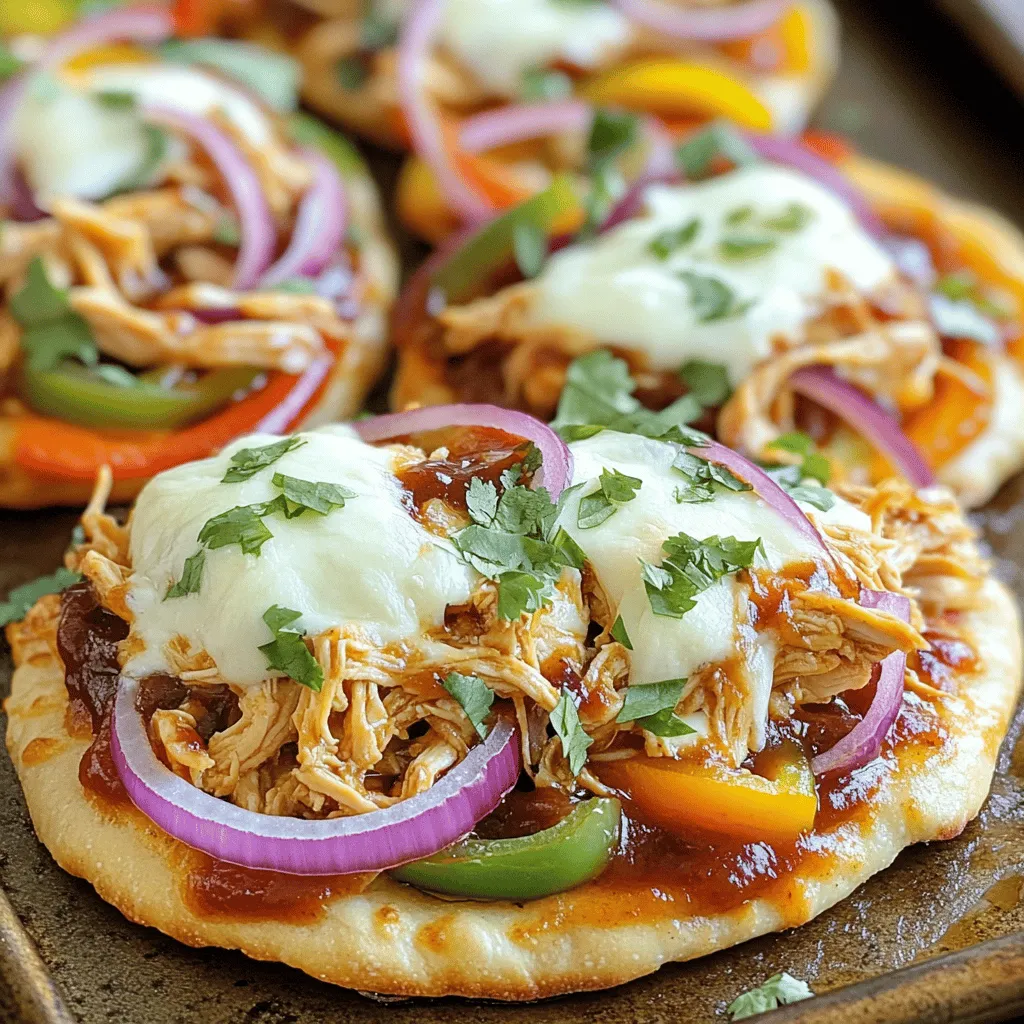 To make BBQ chicken flatbread, you need just a few main ingredients. Start with two large flatbreads. These will serve as your base. Next, use one cup of cooked chicken, shredded finely. I like to use leftovers for ease. Then, grab half a cup of your favorite BBQ sauce. This adds that sweet and smoky flavor. Finally, you’ll need one cup of shredded mozzarella cheese. This cheese melts beautifully and makes the dish gooey and delicious.