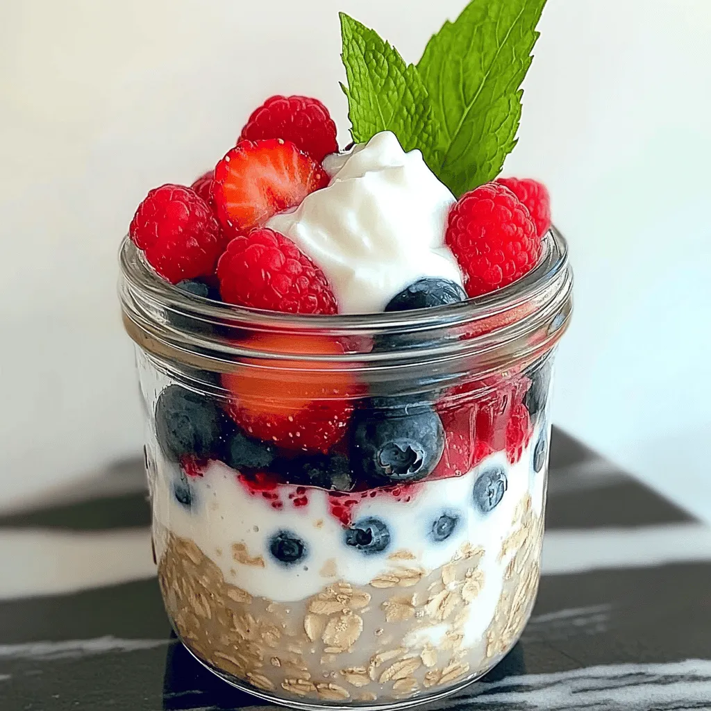 Serve your overnight oats in bowls or jars. Top with any leftover mixed berries. For a fresh touch, add a few mint leaves. This makes your oats look and taste even better. Enjoy your Berry Overnight Oats!