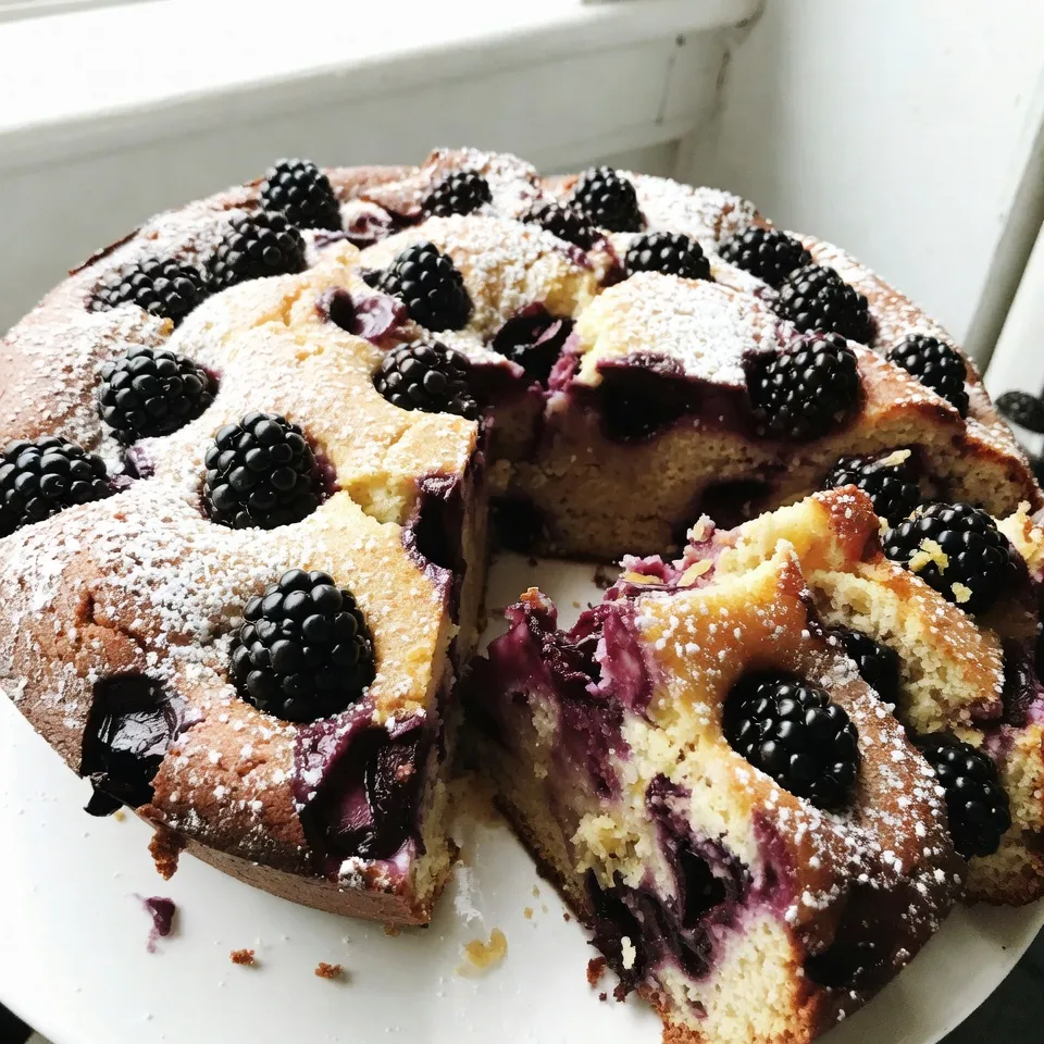 - Beautiful Presentation: Topped with fresh blackberries and a dusting of powdered sugar, this cake is as beautiful as it is delicious, making it a showstopper for any gathering.