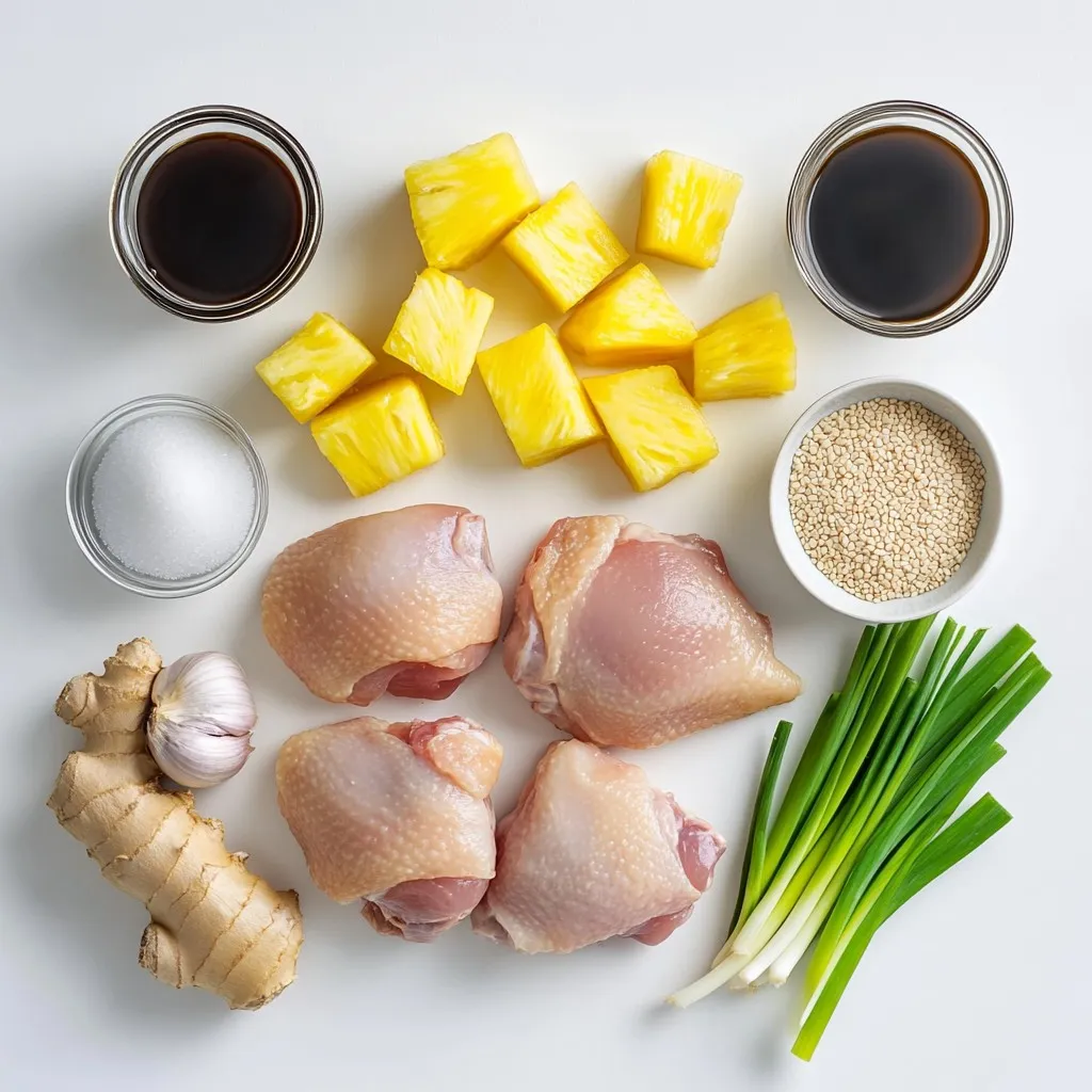 Each ingredient plays a key role in this dish. The chicken thighs give you a juicy base. Brown sugar adds sweetness, while the soy sauce brings in savory notes. Fresh pineapple adds a tropical twist. Apple cider vinegar balances the flavors. Garlic and ginger give warmth and depth. Cornstarch helps thicken the sauce. You can finish with green onions and sesame seeds for crunch.