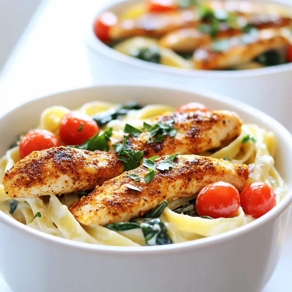 When making Cajun Chicken Alfredo, I always start with fresh, high-quality ingredients. The chicken breast is the star here, sliced into strips for even cooking. I coat the chicken with Cajun seasoning, which brings that bold flavor. Olive oil helps with cooking and adds richness.
