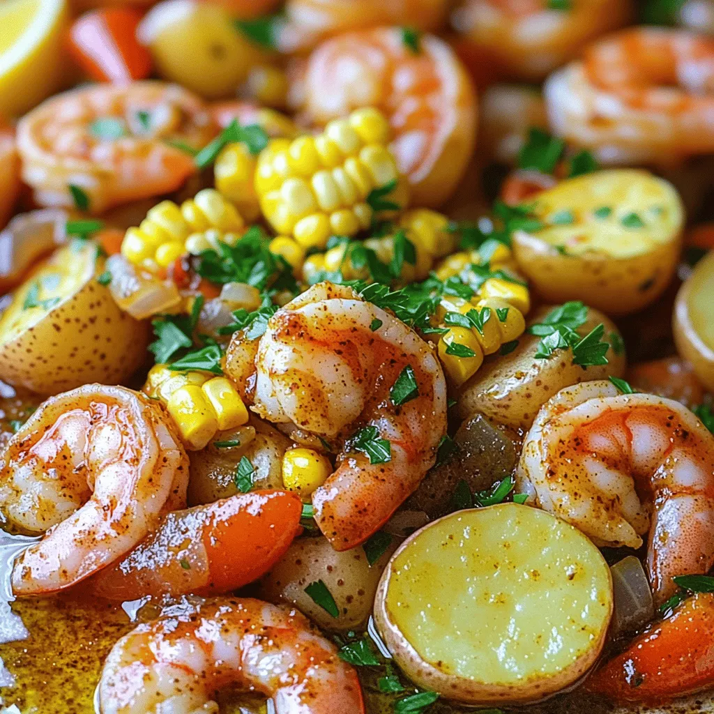 In this dish, the main ingredients shine. Large shrimp add a sweet flavor. Baby potatoes offer a creamy texture. Sweet corn gives a nice crunch.