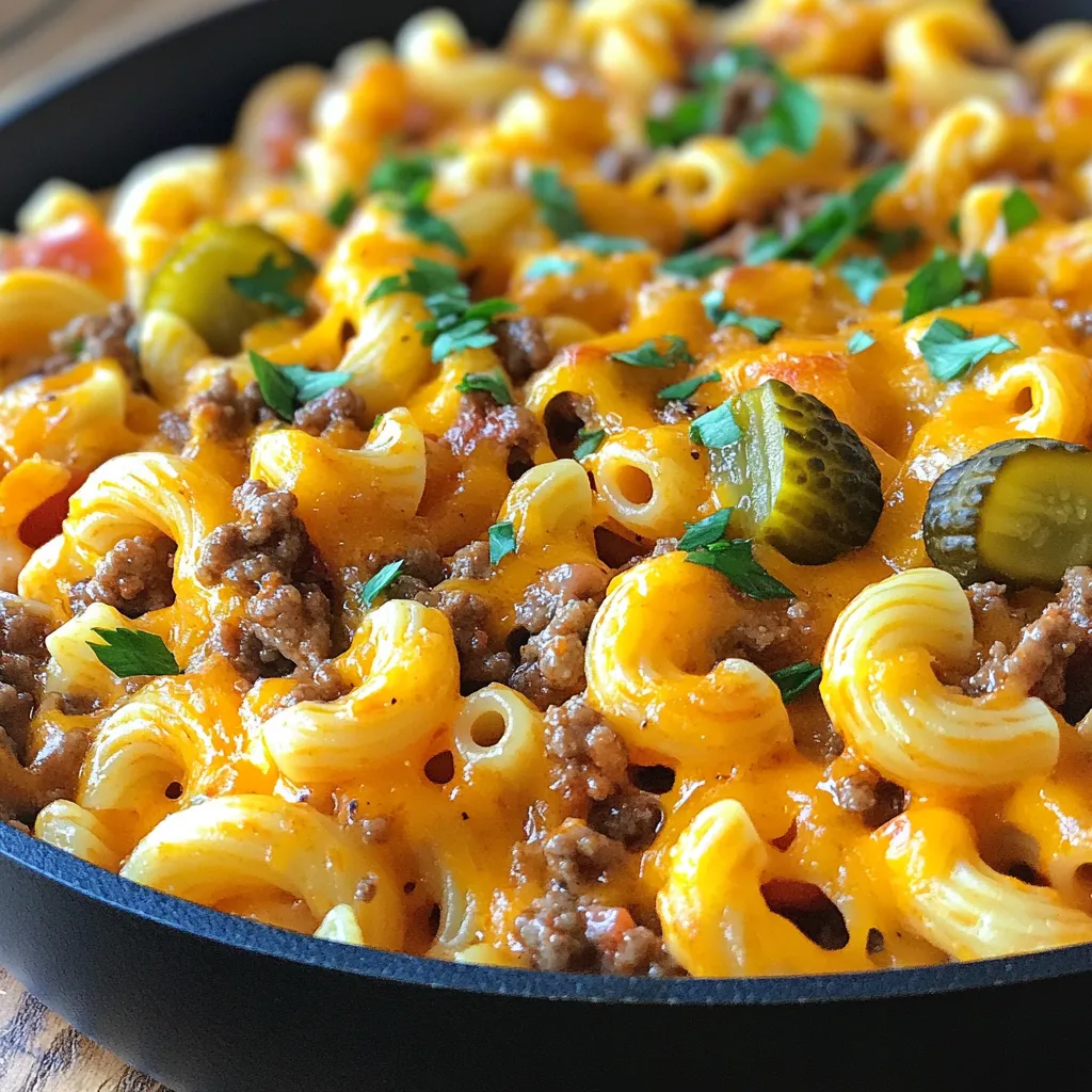- Taste the dish and adjust the seasoning with more salt or pepper if desired. For a classic cheeseburger flair, garnish with pickle slices and a sprinkle of fresh parsley.