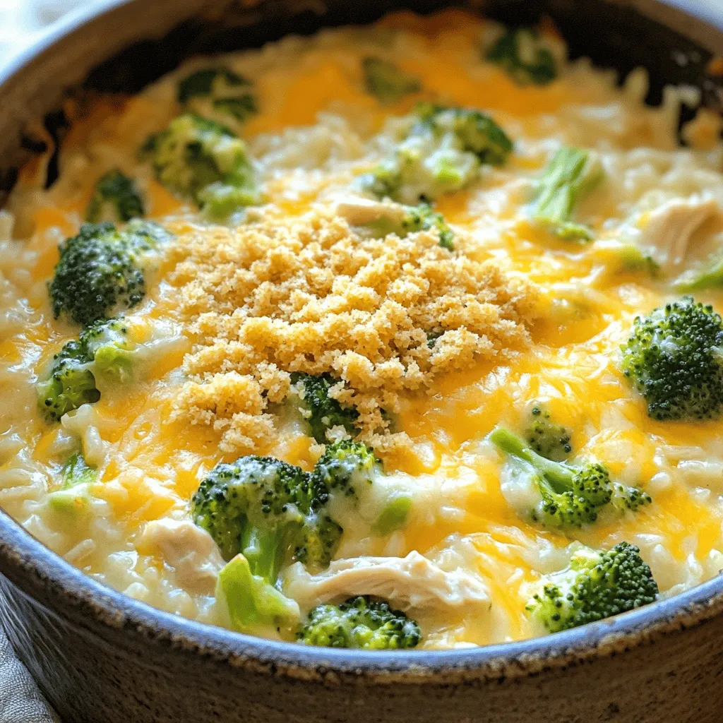 Gathering the right ingredients makes your cheesy broccoli chicken rice casserole a success. Start with shredded chicken. Use leftover roast chicken or rotisserie chicken for ease. Then, grab long-grain rice. This type cooks evenly and gives a great texture. Next, pick up fresh or frozen broccoli florets. They add color and nutrients to your dish.