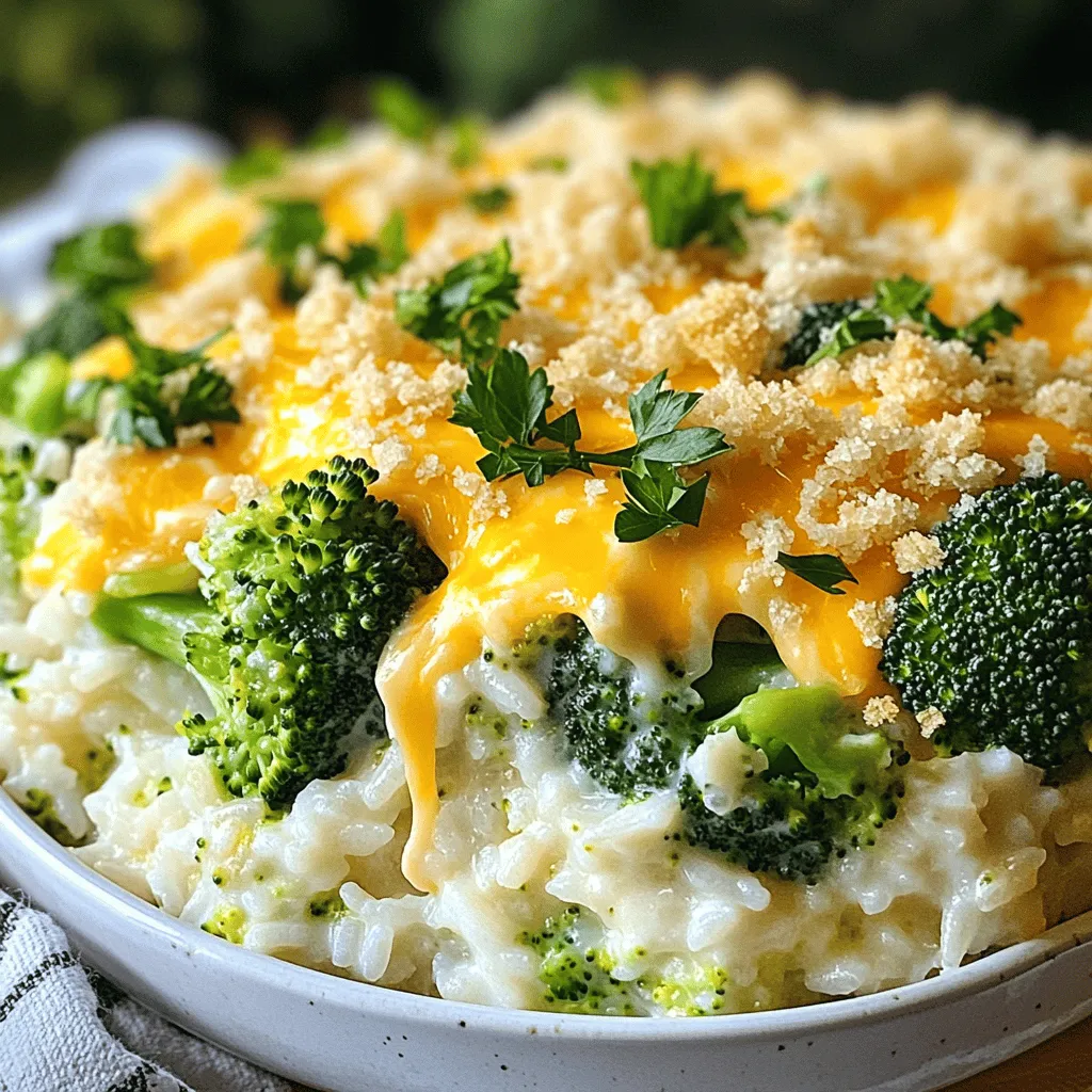 You can easily prepare Cheesy Broccoli Rice Casserole ahead of time. First, cook the rice and broccoli as per the recipe. Then, mix all the ingredients in a bowl. Instead of baking it right away, cover the dish with plastic wrap or foil. Store it in the fridge for up to 24 hours. When ready to bake, just remove the cover and bake it at 350°F (175°C) for about 30-35 minutes. This saves time and makes meal prep easy!