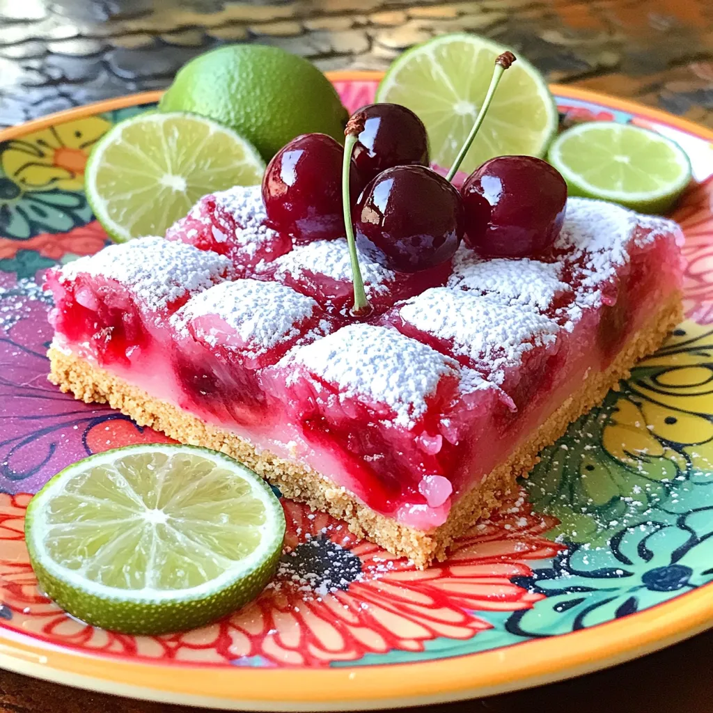 Presentation matters! Cut the bars into even squares for a neat look. Place them on a colorful plate. Garnish with lime slices and whole cherries for fun. A light dusting of powdered sugar adds elegance. Serve them chilled for a refreshing treat.