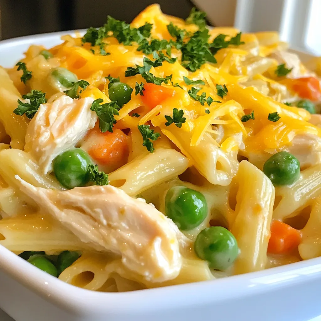 Chicken Pot Pie Pasta Comforting and Creamy Dish