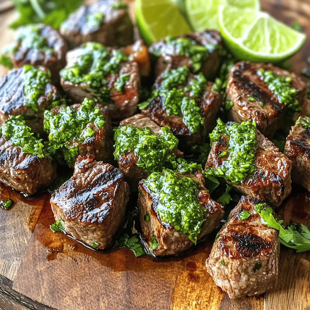 Serve Chimichurri Steak Bites on a beautiful platter. Pair them with fresh grilled vegetables or a simple salad. You can also add crusty bread to soak up the chimichurri sauce. Lime wedges on the side add a burst of freshness. If you want to impress your guests, serve them with a glass of red wine.