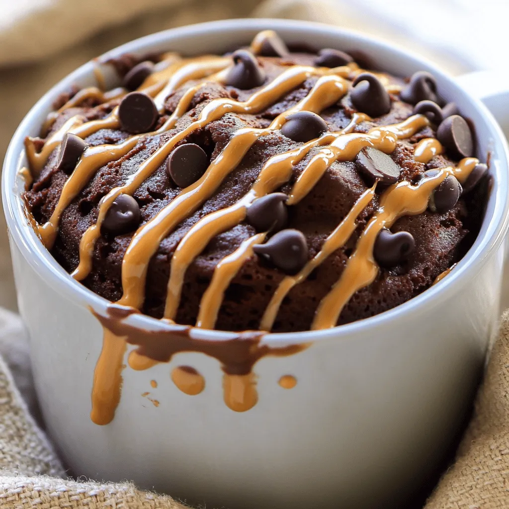 To make a Chocolate Peanut Butter Mug Cake, you will need: - 4 tablespoons all-purpose flour - 4 tablespoons granulated sugar - 2 tablespoons unsweetened cocoa powder - 1/8 teaspoon baking powder - 1/8 teaspoon salt - 3 tablespoons milk (or non-dairy milk) - 2 tablespoons creamy peanut butter - 1 tablespoon vegetable oil - 1/2 teaspoon vanilla extract - Optional: 2 tablespoons chocolate chips Each ingredient plays a key role. The flour gives it structure, while the sugar adds sweetness. Cocoa powder brings rich chocolate flavor. Baking powder helps it rise, and salt enhances taste. Milk keeps it moist. Peanut butter adds creaminess and flavor. Oil gives it a tender crumb, and vanilla adds a lovely aroma. If you want to switch things up, here are some alternatives: - Use whole wheat flour instead of all-purpose flour for added fiber. - Swap granulated sugar for brown sugar for a deeper flavor. - Try almond milk or oat milk if you prefer non-dairy options. - For a nut-free version, use sun butter in place of peanut butter. These changes can make the cake healthier or suit different diets without losing flavor. Want to make your mug cake even more exciting? Here are some optional mix-ins: - Add 2 tablespoons of chocolate chips for extra chocolatey goodness. - Toss in some chopped nuts for a crunchy texture. - Mix in a pinch of cinnamon for a warm spice note. - Add a few berries for a fruity twist. These mix-ins can transform your mug cake into something special. Feel free to get creative and make it your own! Start by picking a microwave-safe mug. Make sure it can hold about 12 ounces. In the mug, add: - 4 tablespoons all-purpose flour - 4 tablespoons granulated sugar - 2 tablespoons unsweetened cocoa powder - 1/8 teaspoon baking powder - 1/8 teaspoon salt Use a spoon to mix these dry ingredients well. Stir until no clumps are left. This step helps your mug cake rise and taste great. Now it’s time to add the wet stuff. Pour in: - 3 tablespoons milk (or non-dairy milk) - 2 tablespoons creamy peanut butter - 1 tablespoon vegetable oil - 1/2 teaspoon vanilla extract Grab a fork or a small whisk. Mix these ingredients until the batter is smooth. Make sure there are no lumps. If you want a chocolatey twist, add in 2 tablespoons of chocolate chips. Stir gently to combine. Place the mug in the microwave. Heat it on high for 1 minute and 30 seconds. After this, check your cake. It should look puffed and set. If a toothpick comes out wet, microwave in 10-second bursts until it is fully cooked. Be careful not to overcook it. Overcooking can make it dry. Let it cool for about a minute before digging in. You can top it with warm peanut butter or ice cream for a special treat. Enjoy your delicious mug cake! To get a soft, moist mug cake, mix the dry and wet ingredients well. Make sure no lumps remain in your batter. If you want a richer taste, add chocolate chips. They melt and create a gooey center. This makes each bite extra special. Microwave power levels vary. Start with 1 minute and 30 seconds. Check the cake after this time. If a toothpick comes out wet, cook in 10-second bursts. Keep an eye on it. Overcooking makes the cake dry. Top your mug cake with warm peanut butter. It adds flavor and richness. You can also add a scoop of ice cream. The cold ice cream will melt slightly on the warm cake. For a fun twist, sprinkle some nuts or fruits on top. {{image_4}} You can change the flavor of your mug cake easily! Try adding different extracts. Instead of vanilla, use almond or coconut extract. You can also mix in spices like cinnamon or nutmeg for warmth. If you love fruit, add mashed bananas or chopped strawberries. These will add sweetness and moisture. For a fun twist, consider peanut butter chips or caramel bits. Each addition makes your cake unique and exciting! You can make this mug cake gluten-free! Simply swap all-purpose flour with almond flour or a gluten-free blend. For a vegan version, replace the milk with almond, soy, or oat milk. Use a plant-based butter instead of regular butter. Make sure your chocolate chips are dairy-free if you add them. These changes help everyone enjoy this treat! Toppings make your mug cake even more special. A drizzle of chocolate syrup adds sweetness. You can also use whipped cream for a light touch. A scoop of ice cream on top is a classic choice! Try crushed nuts for crunch, or sprinkle some sea salt for contrast. Fresh fruit like berries or banana slices also pairs well. Get creative and make it your own! If you have leftover mug cake, store it in an airtight container. Let the cake cool before covering it. This keeps it moist and fresh. You can keep it at room temperature for one day. If you want to save it longer, place it in the fridge. The fridge can keep it good for up to three days. When you're ready to eat the leftover cake, you can reheat it in the microwave. Place the mug cake in the microwave for about 10 to 15 seconds. Check the cake to see if it's warm. If it's not hot enough, go for another 5 to 10 seconds. Be careful not to overheat it, or it can become tough. You can also freeze the mug cake. To do this, cut the cake into pieces. Wrap each piece tightly in plastic wrap, then place them in a freezer-safe bag. You can freeze them for up to three months. When you're ready to enjoy a piece, take it out and let it thaw in the fridge overnight. Reheat it as you like before serving. Yes, you can skip the peanut butter. Try using almond butter or sunflower seed butter. You can also use applesauce for a different taste. This keeps the cake moist but changes the flavor. Microwave power can vary. Start with 1 minute and 30 seconds. Check the cake after this time. If it needs more time, add 10 seconds at a time. You want a firm, set cake. You can use almond flour or oat flour instead. These options work well in mug cakes. They may change the texture slightly, but they keep it tasty. Just remember to use the same amount. This blog post covered how to mak