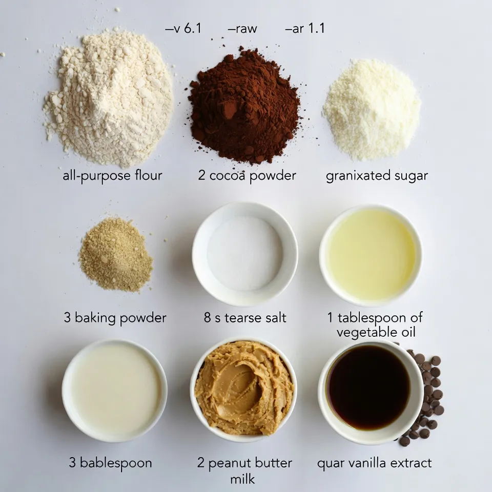 To make a delightful chocolate peanut butter mug cake, gather these simple items: