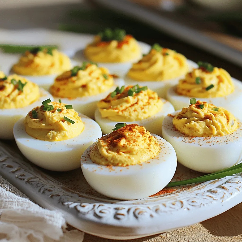 For presentation, arrange the deviled eggs on a beautiful serving platter. You can sprinkle extra smoked paprika for color. Chopped chives or parsley adds a fresh touch. For fun, place a slice of pickled jalapeño on top for extra flavor. Enjoy your delightful party snack!