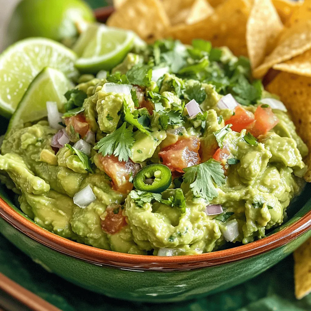 Serve guacamole in a colorful bowl to make it stand out. Top it with extra chopped cilantro for a fresh look. Pair it with crispy tortilla chips for the perfect dip. You can also serve it with veggie sticks for a healthy twist. If you want to impress guests, add lime wedges on the side. This lets everyone squeeze extra lime juice on their guacamole.