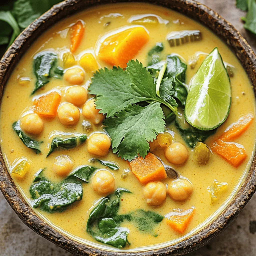 To make your Coconut Curry Chickpea Soup shine, focus on balancing spices. Start with a solid base of coconut oil, onion, garlic, and ginger. Sauté these ingredients well; this brings out the flavors. Use a medium heat to cook the onion until soft and translucent. This step takes about five minutes.