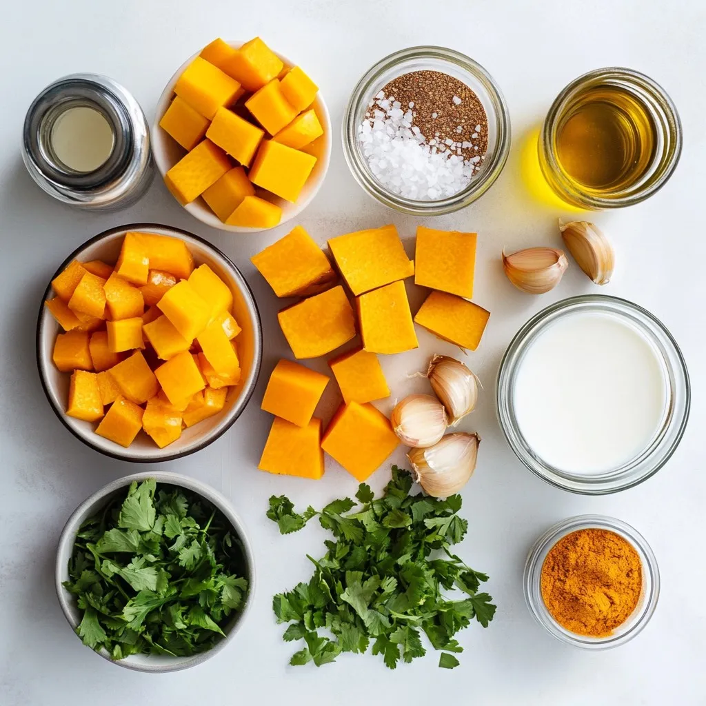 For this cozy winter squash soup, I focus on key ingredients that bring warmth and flavor. Butternut squash and acorn squash are my stars. They add a rich, sweet taste. Onions and garlic give the soup a nice base. The coconut milk makes it creamy and adds a hint of sweetness.