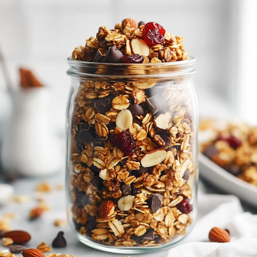 Serve your granola clusters in a stylish glass jar or bowl. They pair well with yogurt or milk for breakfast. You can also snack on them straight from the jar. For added flair, top with extra cranberries and chocolate chips. This makes your treat both tasty and visually appealing!