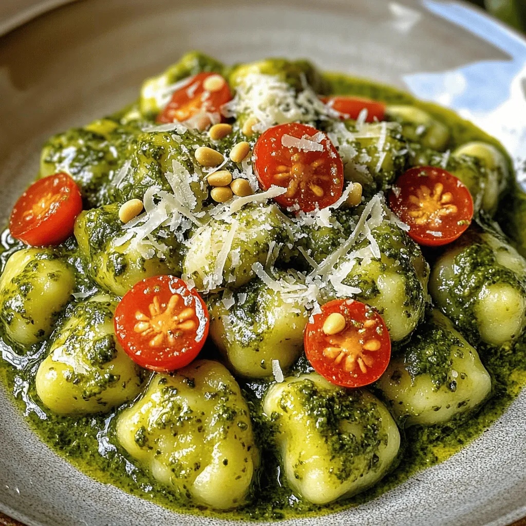 Presentation matters! Serve your creamy pesto gnocchi in a shallow bowl. This allows the sauce to shine. Top with halved cherry tomatoes for a pop of color. Sprinkle extra Parmesan cheese on top for added flavor. For a fresh touch, add a few basil leaves and a drizzle of olive oil. Serve it hot for the best taste and texture.