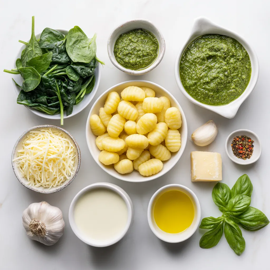 Each ingredient adds something special. The potato gnocchi gives a soft base. Fresh spinach adds color and nutrients. Basil pesto brings a burst of flavor, while heavy cream creates a rich sauce. Cheese makes everything gooey and comforting.