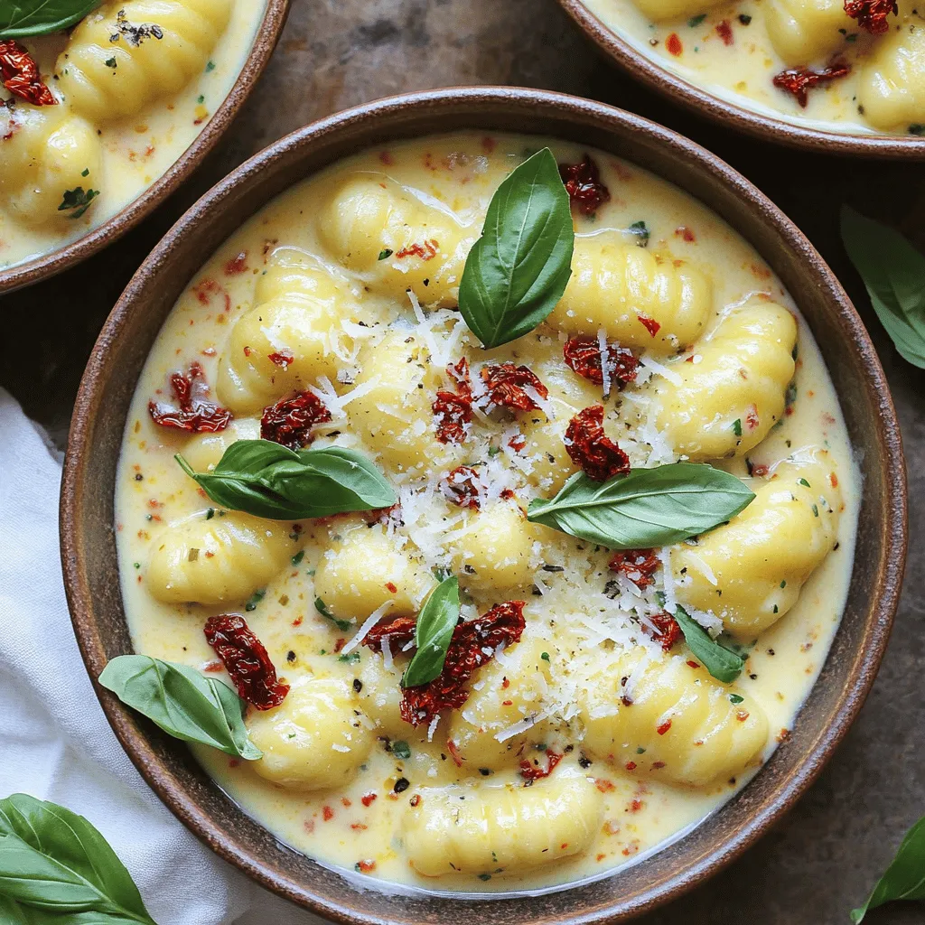 Serve your creamy sun-dried tomato gnocchi in shallow bowls. This keeps the sauce visible and inviting. A sprinkle of extra Parmesan on top adds a lovely finishing touch.