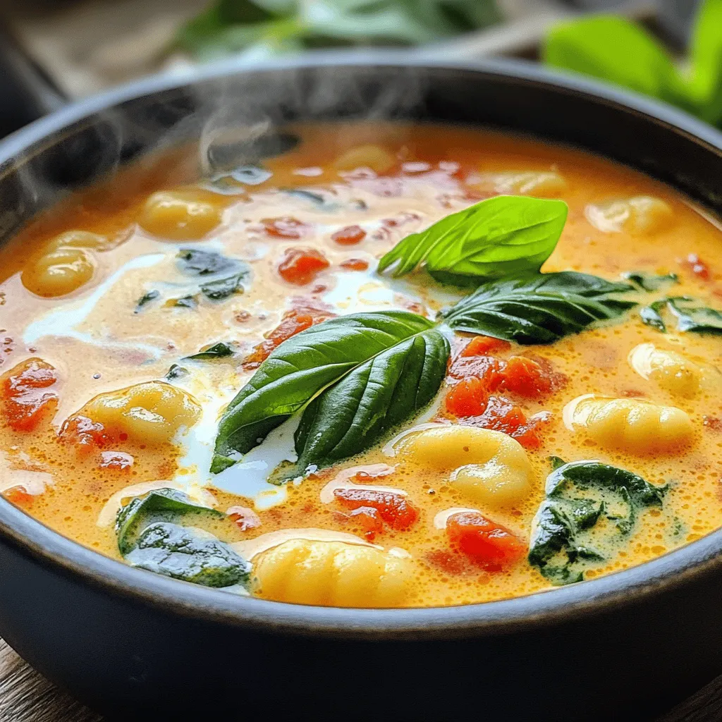You can enhance this soup with seasonal vegetables. For example, add zucchini, carrots, or bell peppers. Chop them into small pieces and sauté them with the onion. This step helps them soften and blend into the soup. You can also add kale or swiss chard along with the spinach for extra nutrients. These veggies not only boost nutrition but also add color and flavor to your creamy tomato gnocchi soup.