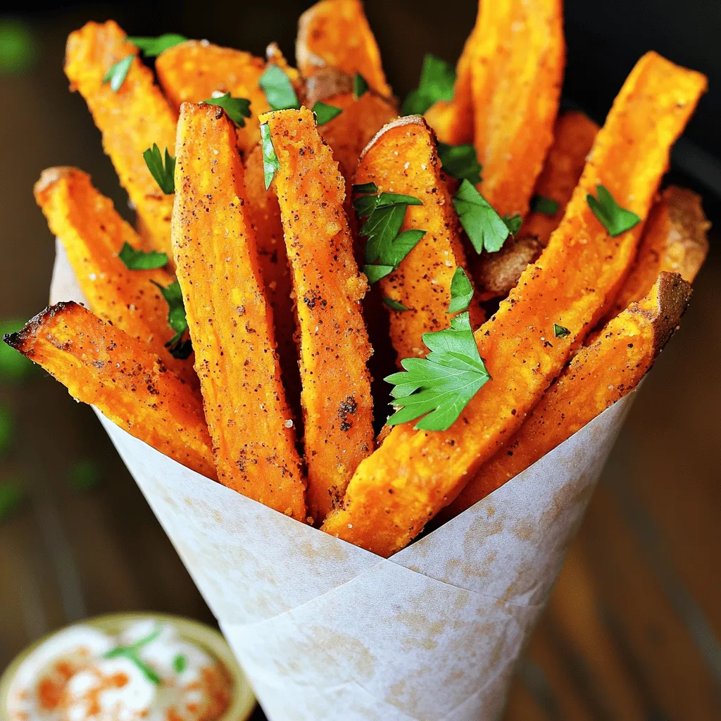 Once baked, let the fries cool for a few minutes. This helps them firm up. Garnish with finely chopped parsley for a colorful touch. Enjoy your crispy baked sweet potato fries as a tasty snack or side dish.