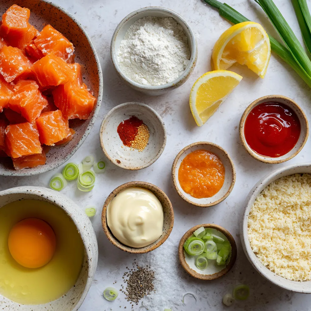 Main Ingredients for Crispy Bang Bang Salmon Bites