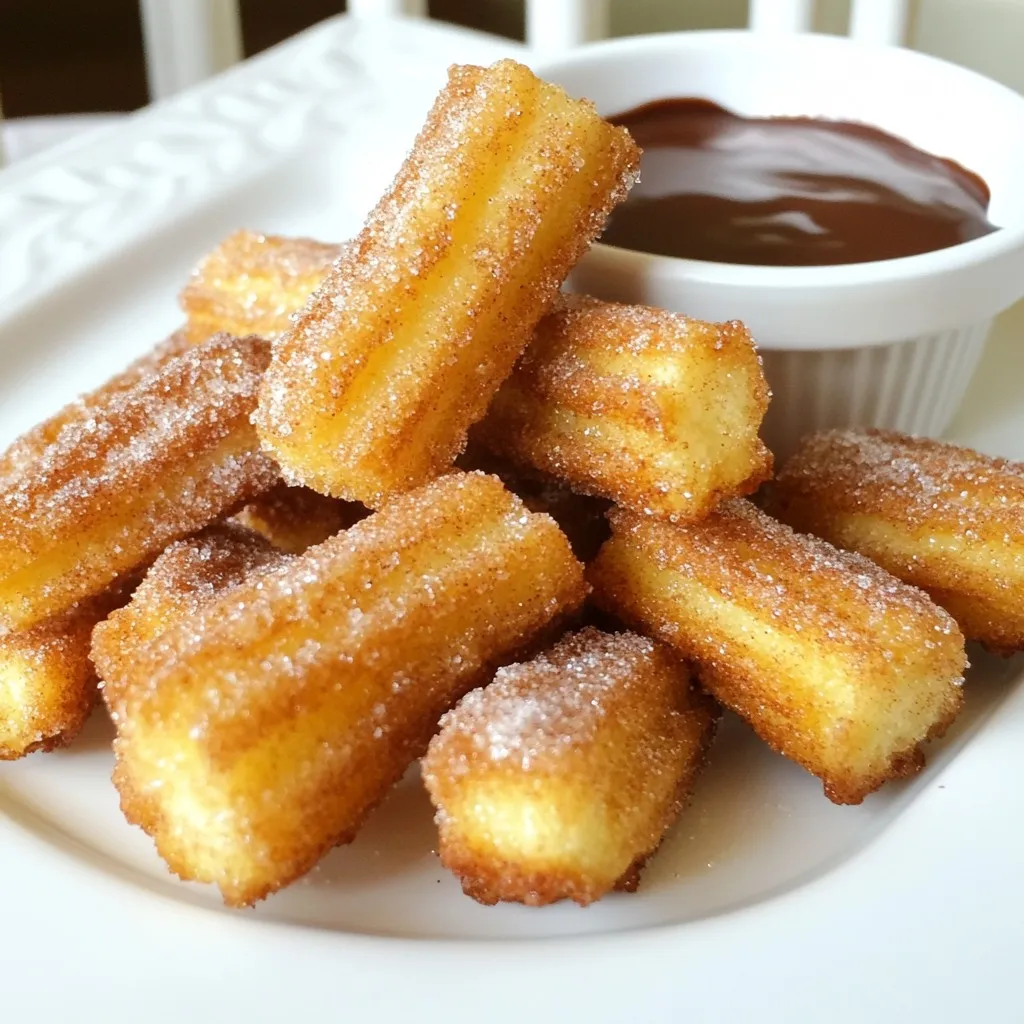 Once they turn golden brown, take them out with a slotted spoon. Let the churro bites drain on paper towels. While they’re still warm, roll them in a mix of 1/2 cup granulated sugar and 1 teaspoon ground cinnamon. Make sure they’re completely coated in the sweet mix. Serve them hot with chocolate or caramel sauce for dipping. Enjoy!