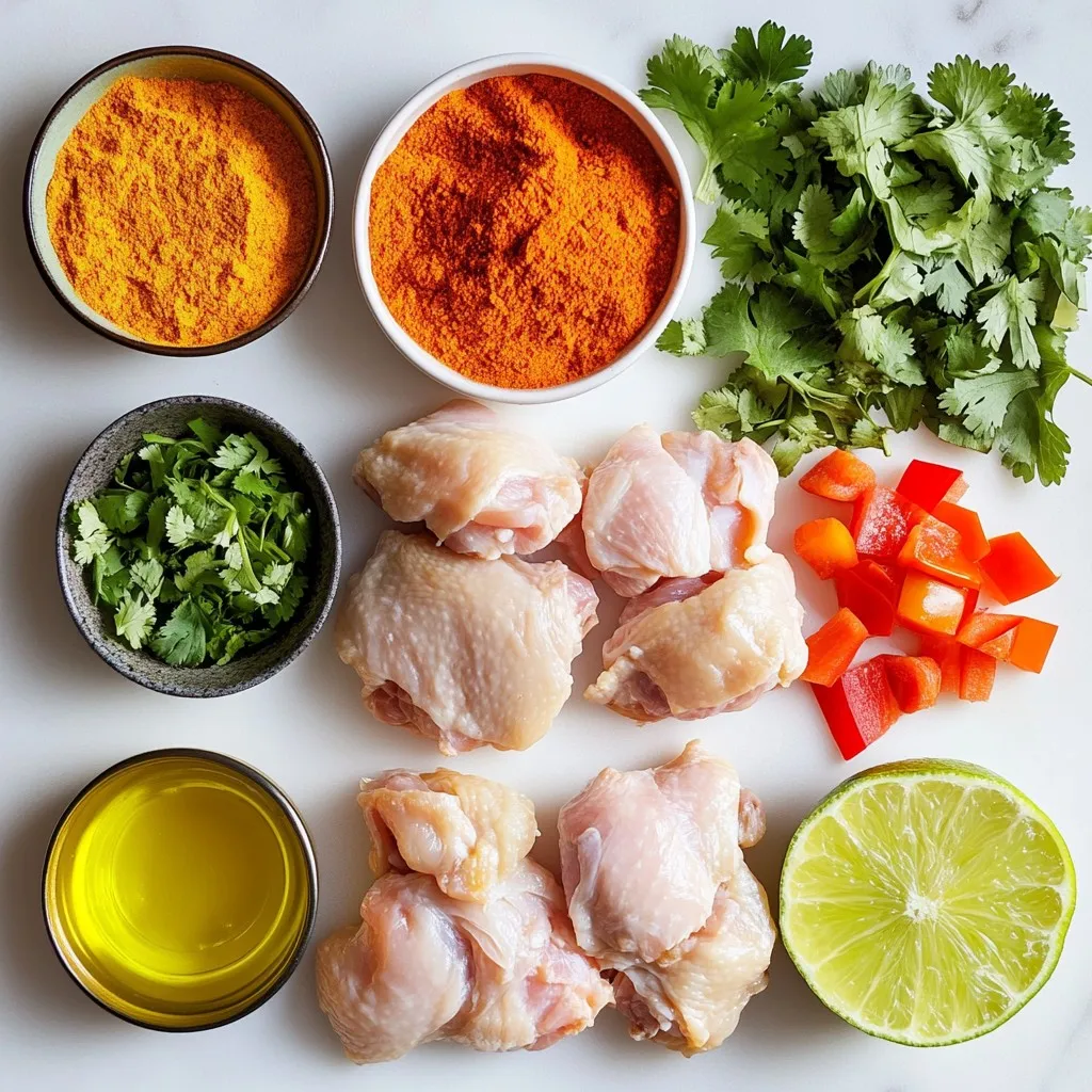 The main ingredients are simple yet powerful. The chicken thighs are juicy and tender. Coconut milk adds a creamy richness. Olive oil helps sauté the aromatics.