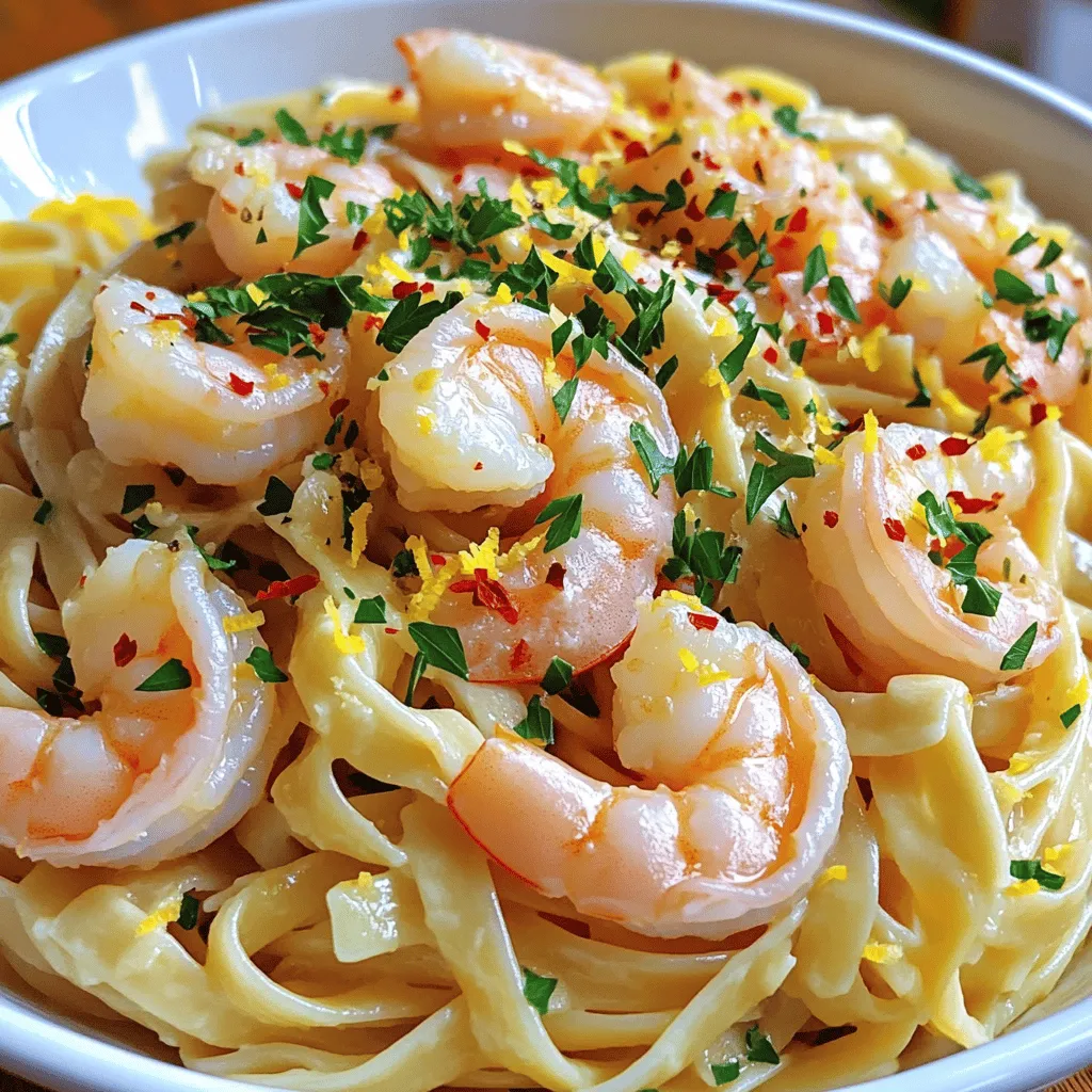 To make your dish look great, serve the linguine in shallow bowls. This lets the shrimp sit nicely on top. It also makes it easy to see the sauce and garnish. Sprinkle fresh parsley on top for a pop of color.