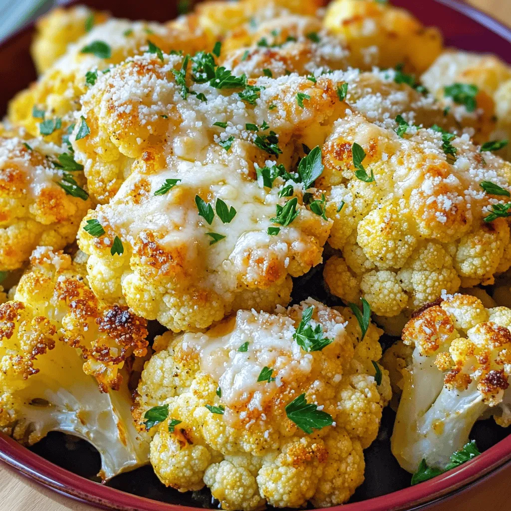 Pair Garlic Parmesan Roasted Cauliflower with main dishes like grilled chicken or fish. It also complements pasta nicely. The rich flavors balance the meal. For garnishing ideas, sprinkle more parsley on top. You can also add lemon zest for a fresh touch. A squeeze of lemon juice enhances the dish’s flavor too.