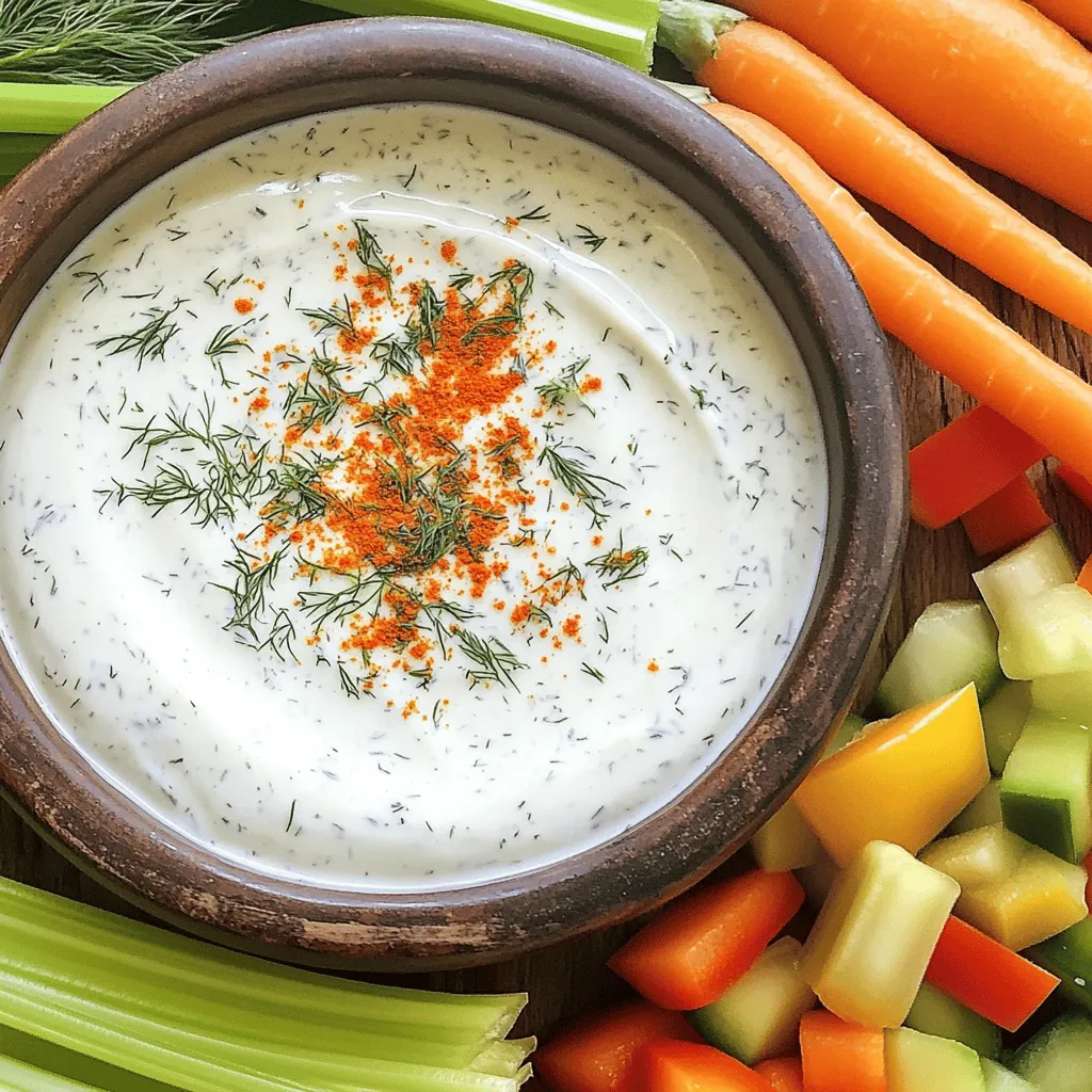 Chilling your dip is crucial. Let it rest in the fridge for at least 30 minutes. This allows the flavors to blend and deepen. For serving, arrange fresh vegetables like carrots, celery, and bell peppers on a platter. You can also use small bowls for individual servings. Add a sprig of dill on each bowl for a lovely touch.