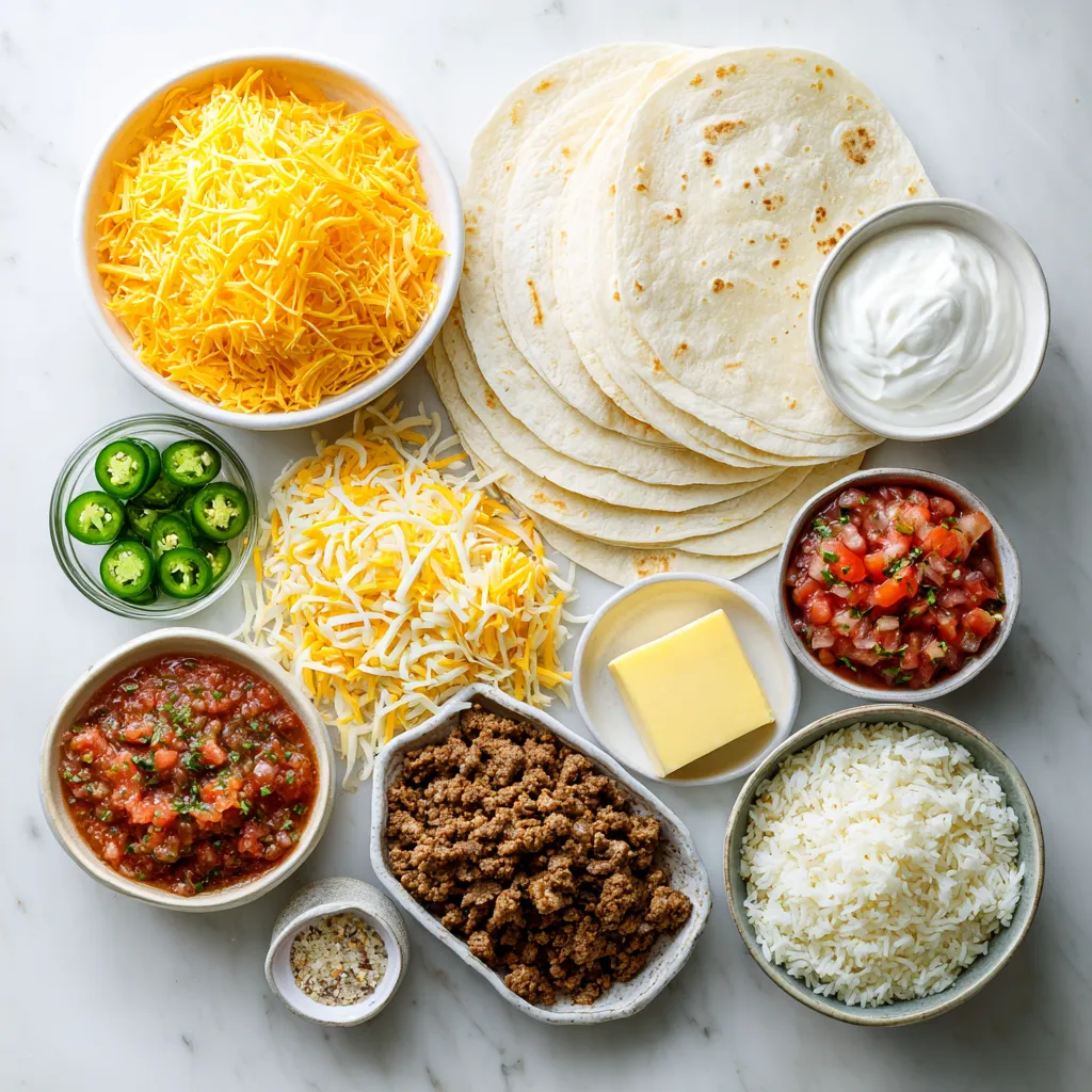 In this recipe, we focus on simple and tasty ingredients. Flour tortillas form the base. They wrap around our delicious filling. The shredded cheese blends two kinds: cheddar and mozzarella. This mix creates a creamy, melty texture.