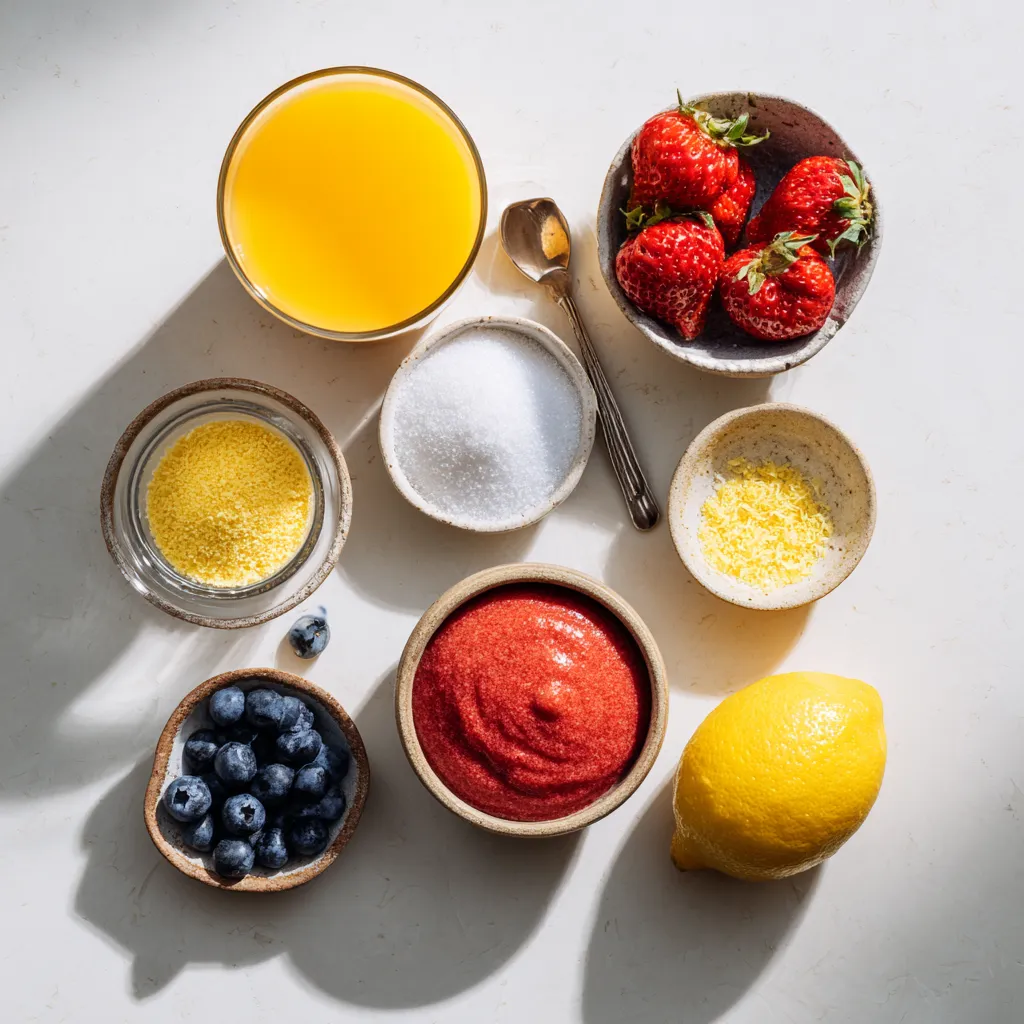 Each ingredient plays a key role. The orange juice gives a bright and tangy flavor. The pureed strawberries and blueberries add sweetness and color. Coconut milk makes it creamy, while lemon juice adds a nice zing. The sugar balances the flavors, ensuring a sweet treat. Vanilla extract enhances the taste, and a pinch of salt brings everything together.