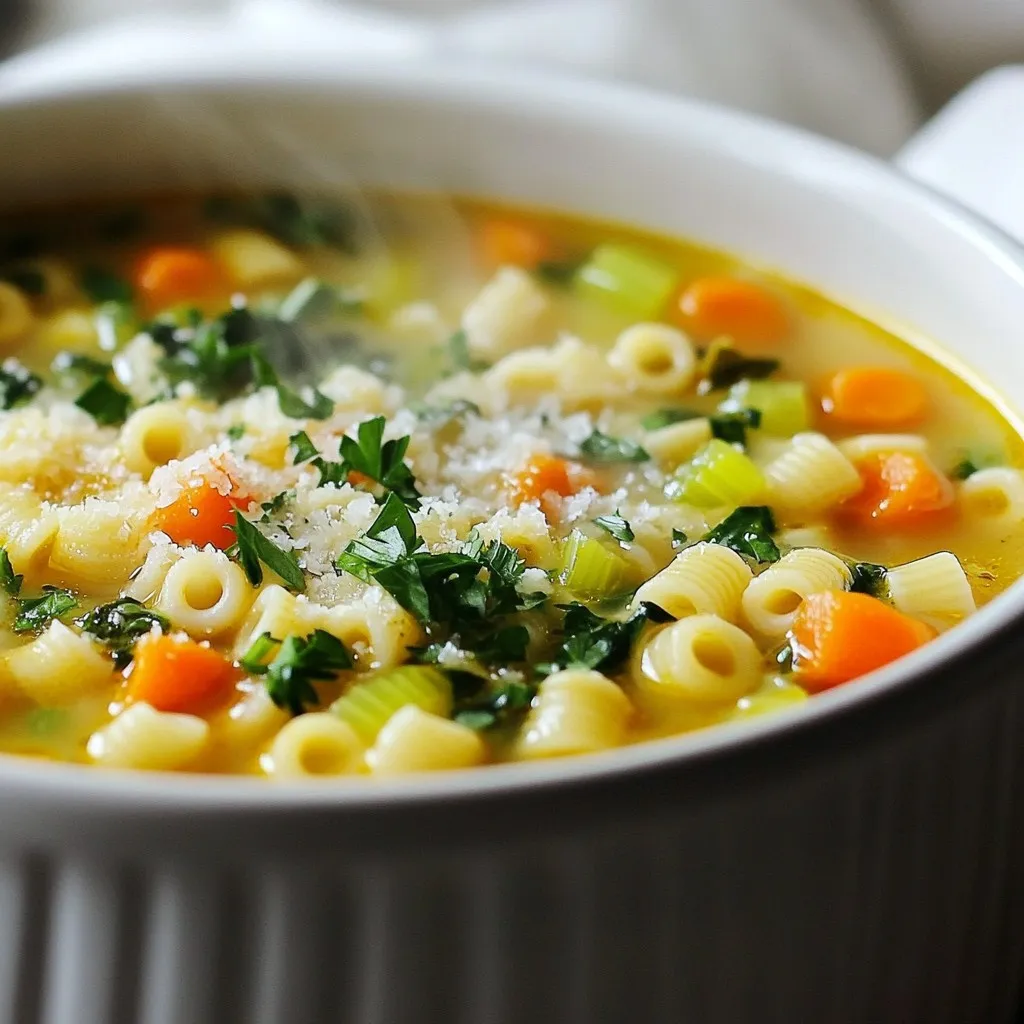After enjoying your Italian Pastina Soup, store any leftovers properly. First, let the soup cool down. Then, pour it into an airtight container. You can refrigerate it for up to three days. If you want to save it longer, freeze the soup. Use freezer-safe containers or bags. It can last up to three months in the freezer.