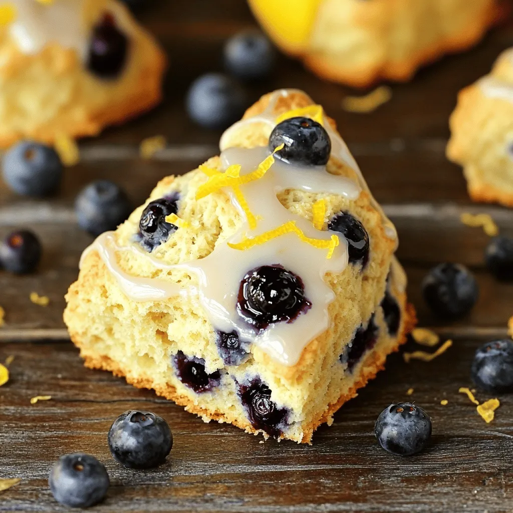 Serve your scones warm for the best taste. A drizzle of lemon glaze adds sweetness and a nice touch. You can make the glaze by mixing powdered sugar with fresh lemon juice. Garnish with lemon zest and a few blueberries for a pretty presentation.