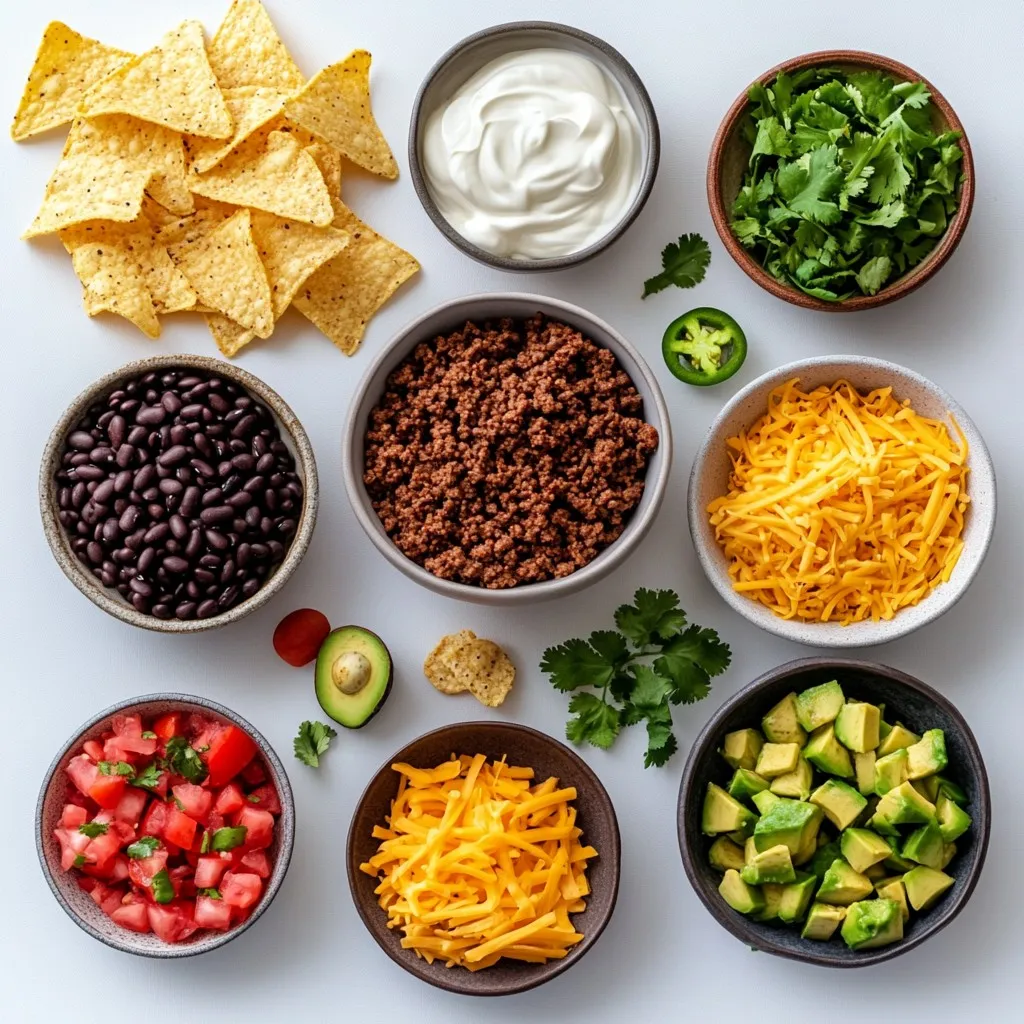 The heart of this Loaded Nacho Casserole lies in its main ingredients. Ground beef or turkey forms a rich base. I love using turkey for a lighter option. Black beans add protein and fiber to the mix. Diced tomatoes with green chilies bring tang and spice. Taco seasoning ties all the flavors together. Tortilla chips act as a crunchy layer. Finally, shredded cheddar cheese melts beautifully on top.