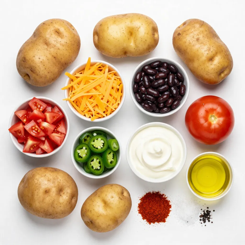 To make loaded nacho potato skins, you need simple, fresh ingredients. Start with four large russet potatoes. They are perfect for holding toppings. Next, grab a cup of shredded cheddar cheese. This cheese melts beautifully and adds great flavor.