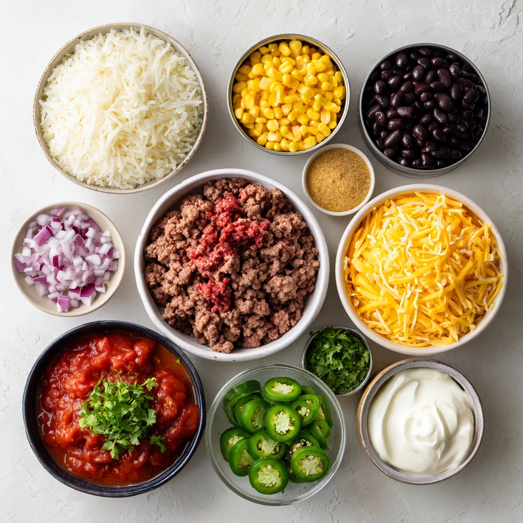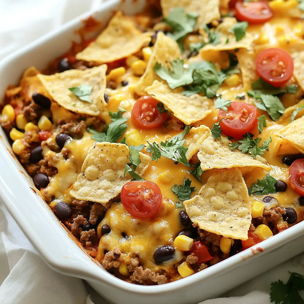 You can also customize this dish to fit your taste. Add jalapeños for a spicy kick or sprinkle cilantro on top for some fresh flavor. Don’t forget the tools! A large skillet helps with cooking the beef, while a 9×13 inch baking dish is perfect for layering all the goodness.