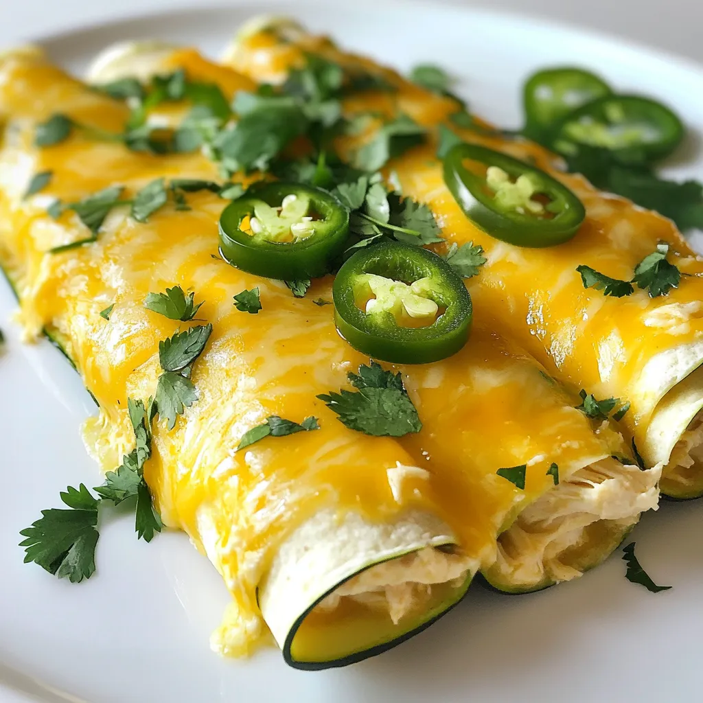 - Assemble Enchiladas: Take one zucchini strip and place a generous spoonful of the chicken mixture at one end. Carefully roll it up tightly, ensuring the filling is secure within the zucchini. Continue this process until all strips are filled and rolled.