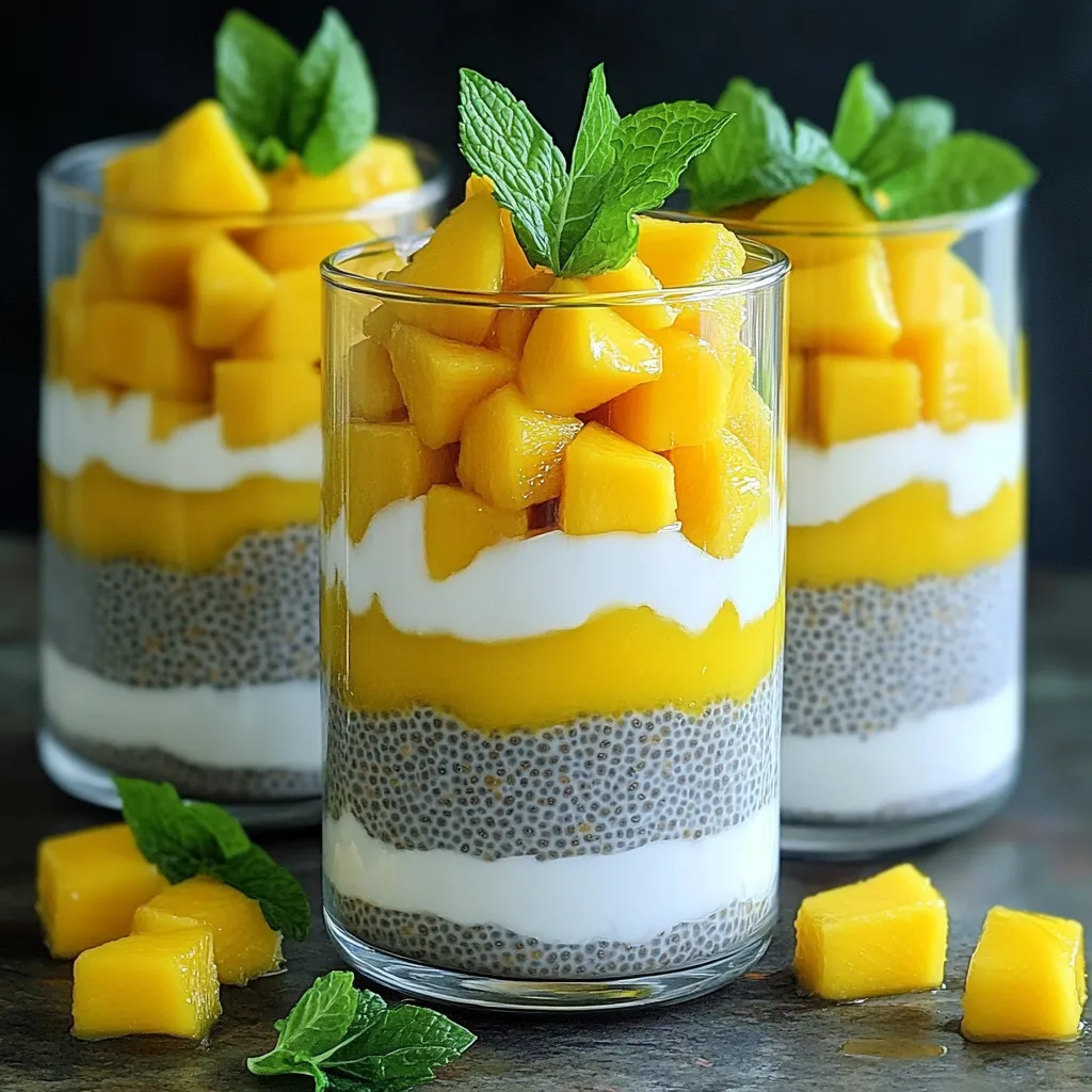 For mango coconut chia pudding, you need the following key ingredients: - 1 cup coconut milk (canned or carton) - 1/4 cup chia seeds - 2 tablespoons maple syrup (or honey) - 1 ripe mango, peeled and diced - 1/2 teaspoon pure vanilla extract - 1/4 teaspoon fine sea salt These ingredients work together to create a creamy and sweet pudding. The coconut milk adds a rich flavor, while chia seeds give it a fun texture. The mango brings a burst of freshness. You can add some fun garnishes if you like! Here are a few ideas: - Fresh mint leaves for color and flavor - Extra mango cubes for a pretty look - Shredded coconut for added texture These garnishes make the dish look special and taste even better. If you cannot find coconut milk or prefer a different flavor, try these substitutes: - Almond milk or soy milk for a lighter option - Greek yogurt for a creamier texture For sweeteners, you can use: - Agave syrup instead of maple syrup - Stevia for a low-calorie choice These swaps let you enjoy the pudding while fitting your taste or diet. Start by grabbing a large mixing bowl. Add 1 cup of coconut milk. You can use canned or carton coconut milk. Next, pour in 1/4 cup of chia seeds. These tiny seeds are packed with nutrients. Then, add 2 tablespoons of maple syrup for sweetness. If you prefer, you can swap maple syrup with honey. Don’t forget to add 1/2 teaspoon of pure vanilla extract and 1/4 teaspoon of fine sea salt. Now comes the fun part—mix it all! Use a whisk or spoon to stir well. Make sure the chia seeds spread evenly in the coconut milk. Once mixed, cover the bowl tightly with plastic wrap or a lid. Place it in the refrigerator. Let it chill for about 4 hours. If you have time, letting it sit overnight gives the best results. This allows the chia seeds to soak up the liquid. They will grow and create a creamy pudding-like texture. After chilling, take the bowl out of the fridge. Stir the mixture again to break any clumps. Your pudding should look thick and smooth now. Now, it’s time to make it pretty! Grab some serving glasses or bowls. Start with a spoonful of your chia pudding at the bottom. Next, add a layer of diced mango cubes. Make it colorful by alternating layers. Continue adding chia pudding and then more mango. Fill the glasses nearly to the top. Finish with a final layer of mango on top. For a nice touch, add some more mango cubes and fresh mint leaves. This adds a pop of color and a fresh flavor. Serve these chilled and enjoy every bite! To get the best texture, start with the right ratio of chia seeds to liquid. I use 1/4 cup of chia seeds for every cup of coconut milk. This mix gives you a thick and creamy pudding. Stir the mixture well after mixing. This prevents clumps from forming. After chilling, stir again to ensure the chia seeds are evenly spread. If you want a smoother texture, you can blend the mixture before chilling. Sweetness is a personal choice. I use 2 tablespoons of maple syrup, but you can adjust this. If you like it sweeter, add more syrup or honey. If you prefer less sweetness, reduce the amount. Always taste before serving. You can also mix in mashed banana for a natural sweetness boost. Store leftovers in an airtight container. This keeps the pudding fresh and tasty. It lasts in the fridge for up to three days. If you notice the pudding thickening too much, stir in a bit of coconut milk. This will restore its creamy texture. Always add fresh fruit just before serving for the best taste! {{image_4}} You can mix in other fruits for a fun twist. Try adding pineapple or kiwi. These fruits pair well with mango and coconut. You can also use berries for a vibrant look. Just remember to adjust the sweetness if you add tart fruits like raspberries. This recipe is already dairy-free. Use coconut milk from a carton or can. For vegan sweetness, stick with maple syrup. Honey is not vegan, so skip it if you want. You can also use agave syrup as a sweetener. To boost flavor, consider adding spices like cinnamon or nutmeg. A pinch can add warmth and depth. You can also mix in a bit of lime or lemon juice for a zesty kick. Fresh herbs like basil or mint can give a fresh touch, too. Chia seeds are small but mighty. They are packed with fiber, which helps keep you full. Fiber also aids in digestion. Chia seeds offer a good source of protein, making them great for muscle health. They are rich in omega-3 fatty acids, which are good for your heart. With their high antioxidant content, they can help fight free radicals in your body. Eating chia seeds can support healthy skin and may even boost your mood. This recipe serves four, making it easy to share. Each serving has about 200 calories. The coconut milk adds creaminess and flavor, contributing around 100 calories per serving. Chia seeds provide 60 calories. The maple syrup adds sweetness, with about 30 calories per serving. Mango, the star of this dish, has around 10 calories per serving. With fresh mint, you get minimal calories, but it adds a burst of flavor. The key nutrients in this pudding include: - Fiber: Supports digestion and fullness. - Protein: Helps build and repair muscles. - Omega-3 Fatty Acids: Promotes heart health. - Antioxidants: Protects the body from damage. - Vitamins A and C: Boosts immune health and skin health. Enjoying this pudding not only satisfies your sweet tooth but also nourishes your body with essential nutrients. Yes, you can make this pudding ahead of time. It is great for meal prep. I like to prepare it the night before. This allows the chia seeds to soak well. You can enjoy it the next day or even later in the week. I love to serve this pudding in clear glasses. It looks beautiful with layers of mango and chia. You can also top it with fresh mint leaves. This adds a nice touch and makes it look fancy. It’s perfect for brunch or as a light dessert. This dessert lasts about 3 to 5 days in the fridge. Just make sure to cover it tightly. If you notice any liquid separation, just stir