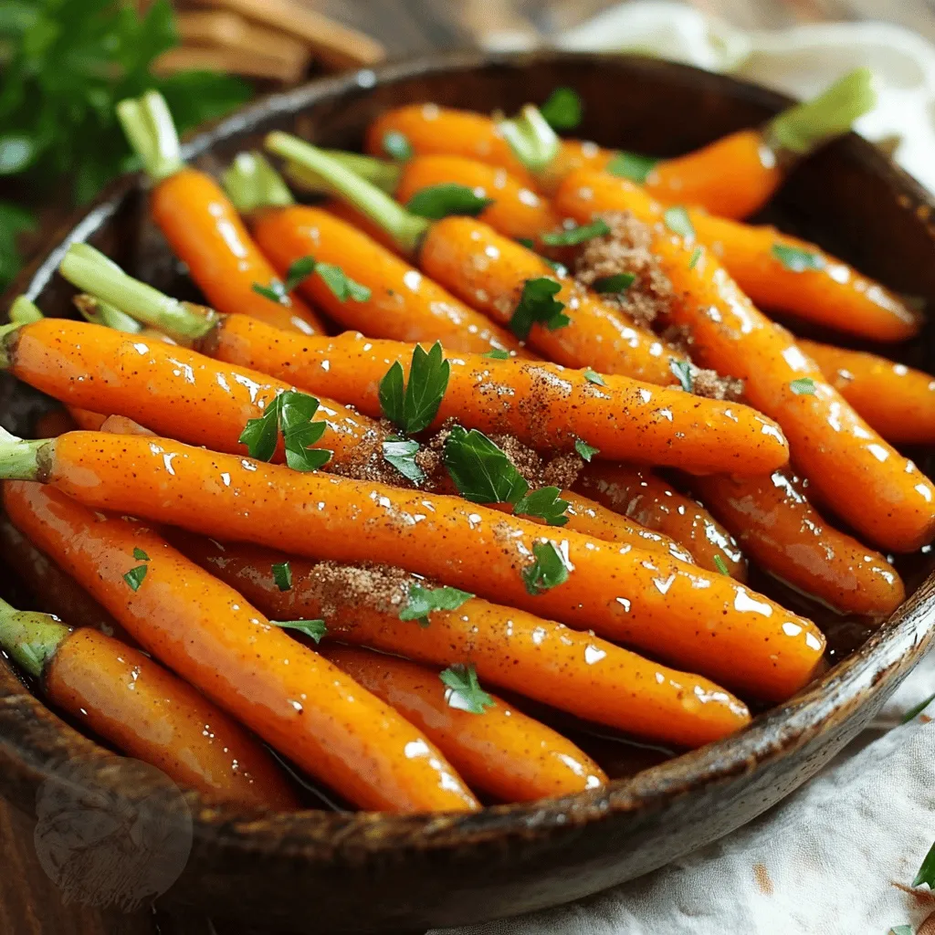 ![- 1 pound baby carrots (or 4 medium-sized regular carrots, sliced into uniform sticks or rounds) - 2 tablespoons unsalted butter - 3 tablespoons pure maple syrup - 1 tablespoon packed brown sugar - 1 teaspoon ground cinnamon - Salt and freshly cracked black pepper to taste - Fresh parsley, finely chopped, for garnish Each serving of maple glazed carrots has about 120 calories. You get roughly 30 grams of carbohydrates, with 15 grams of sugar. The dish has 4 grams of fat and 3 grams of fiber. These sweet carrots pack lots of flavor without too many calories, making them a great side. You might want to switch up ingredients for different diets. For a vegan option, use plant-based butter. If you want to lower sugar, try agave syrup or honey. Each choice can change the taste, but they all work well. To start, wash your carrots well. If you have baby carrots, just rinse them under cold water. For regular carrots, peel them first. Slice them into uniform sticks or rounds. This helps them cook evenly. Aim for pieces about the same size. This step is key for a great dish. Now, let’s cook! Heat a large skillet over medium heat. Add the unsalted butter and let it melt completely. Swirl the pan gently to coat the bottom. Once the butter is bubbly, add your prepared carrots. Sauté them for about 5 minutes. Stir occasionally to get even cooking. You want the carrots to start softening but not fully cooked yet. Next, sprinkle brown sugar and ground cinnamon over the carrots. Mix everything well so each carrot gets coated. This adds a sweet and warm flavor. Now, drizzle the pure maple syrup over the carrots. Cook for another 5-7 minutes, stirring often. This allows the glaze to thicken and the carrots to become tender. When your carrots are tender, season them with salt and black pepper to taste. Give everything one last gentle toss to combine. Carefully remove the skillet from the heat. Transfer the glazed carrots to a serving dish. Make sure to drizzle any leftover syrup from the skillet over the top. To add a finishing touch, garnish with finely chopped fresh parsley. This not only adds color but also a fresh taste. Serve your sweet maple glazed carrots warm. They look great on the plate and taste even better. You can find the complete recipe in the [Full Recipe]. To enhance the sweetness and aroma of your maple glazed carrots, always use pure maple syrup. This syrup has a rich taste that makes your dish shine. Combine it with a bit of brown sugar and cinnamon. This mix adds depth and warmth to the carrots. You can also try adding a pinch of nutmeg for extra flavor. This small tweak can make a big difference. For best results, use a large, heavy skillet. A cast-iron or non-stick pan works well. These types of pans heat evenly and help the carrots cook perfectly. If you have a sauté pan with high sides, that’s great too. This design keeps the glaze in the pan and helps it thicken faster. Maple glazed carrots pair well with many meals. They are a perfect side for roasted chicken or pork. You can also serve them with grilled fish for a fresh taste. If you want a vegetarian option, try them with quinoa or lentils. They add a sweet touch that balances savory dishes. For a festive look, serve them alongside other colorful veggies. For the full recipe, check out the Sweet Maple Glazed Carrots recipe above! {{image_4}} You can make your maple glazed carrots even better by adding other veggies. Try using baby potatoes, parsnips, or sweet potatoes. Cut them into similar sizes as the carrots for even cooking. This mix adds more color and flavor to your dish. When you add more vegetables, adjust the cooking time to ensure everything cooks well. Want to change the flavor? You can add herbs or spices to make your dish unique. Try adding fresh thyme or rosemary for an earthy taste. A pinch of nutmeg can also give a warm hint. If you like heat, sprinkle in some red pepper flakes. Mix and match these additions to find what you enjoy most. If you want to try different sweeteners, you have options! Honey works well and gives a floral note. Brown sugar adds a deeper flavor. Agave syrup is also a great choice for a lighter sweetness. Each sweetener will change the taste, so feel free to experiment with what you have on hand. For the full recipe, check the earlier section. To keep your maple glazed carrots fresh, store them in an airtight container. This helps prevent moisture loss and keeps them tasty. Place the cooled carrots in the container and seal tightly. You can keep them in the fridge for up to four days. If you want to enjoy them later, consider the next steps. When you are ready to eat the leftovers, you want to reheat them gently. The best way is to use a skillet. Heat the skillet over low heat. Add a splash of water or broth to help steam the carrots. Stir them often until they are warmed through. This method helps keep the carrots soft and the glaze flavorful. Avoid using a microwave, as it can make them mushy. If you want to store your maple glazed carrots for a long time, freezing is a good option. First, let them cool completely. Then, place the carrots in a freezer-safe bag or container. Remove as much air as possible to prevent freezer burn. They can last up to three months in the freezer. To use them, thaw in the fridge overnight before reheating. To make maple glazed carrots vegan, swap the butter for a plant-based oil or vegan butter. You can use coconut oil for a hint of tropical flavor. This keeps the dish rich and tasty while staying true to vegan standards. Remember to check the maple syrup as well; most brands are naturally vegan. Yes, you can use frozen carrots. They are convenient and can save time. However, frozen carrots may have a different texture than fresh ones. Thaw them first and drain excess water. Sauté them for a bit longer to ensure they cook through. Fresh carrots bring more crunch and flavor, but frozen can still work well in a pinch. To ensure your glazed carrots are t