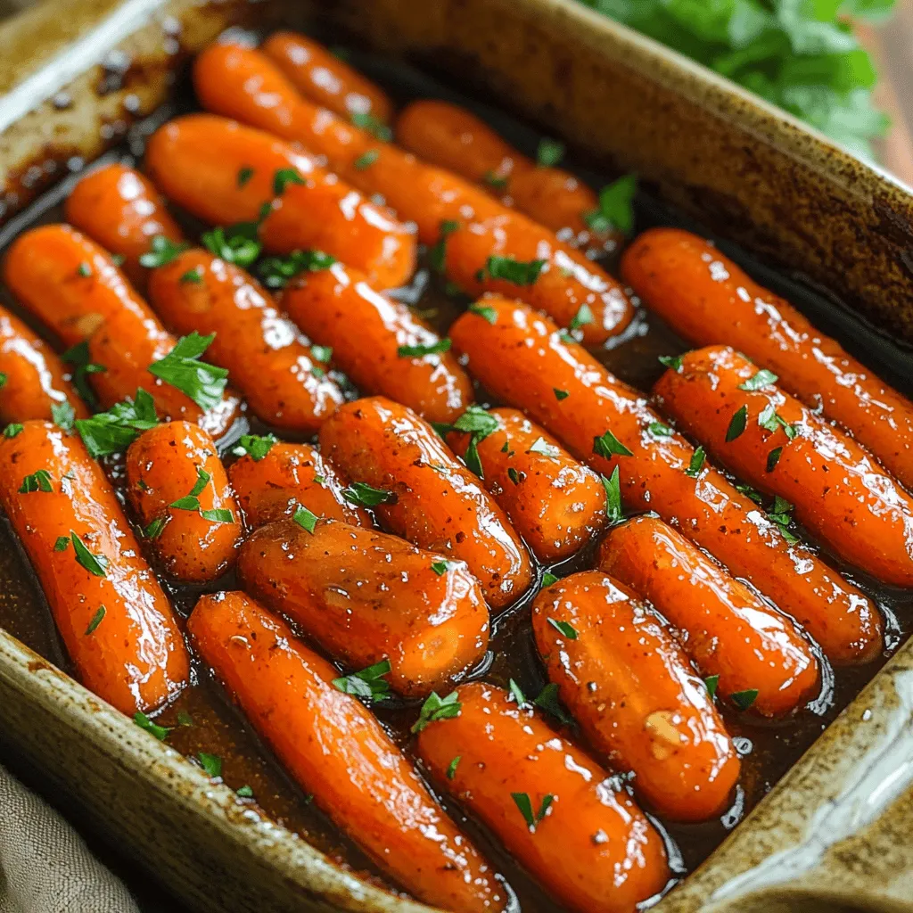 - 1 pound baby carrots, peeled and trimmed - 2 tablespoons unsalted butter - 3 tablespoons pure maple syrup - 1 tablespoon extra virgin olive oil To make maple glazed carrots, you need fresh baby carrots. These sweet, tender veggies roast well. The unsalted butter adds creaminess, while pure maple syrup gives a lovely sweetness. Extra virgin olive oil helps the glaze stick and enhances flavor. - 1 teaspoon ground cinnamon - 1/2 teaspoon sea salt - 1/4 teaspoon freshly ground black pepper The spices make the dish special. Ground cinnamon adds warmth and depth. Sea salt balances the sweetness. Freshly ground black pepper gives a slight kick. This mix creates a perfect harmony of flavors in each bite. - Fresh parsley, finely chopped (for garnish) Adding fresh parsley at the end makes the dish pop. The green color brightens the plate. It also adds a hint of freshness. You can skip it, but it’s a nice touch for presentation. For the full recipe, check the section above. Enjoy making these delicious maple glazed carrots! Preheat your oven to 400°F (200°C). This heat helps the carrots cook evenly. Take 1 pound of baby carrots, peeled and trimmed. Place them in a large bowl. Drizzle 1 tablespoon of olive oil over the carrots. Toss them until they are fully coated in oil. In a small saucepan, melt 2 tablespoons of unsalted butter over low heat. Once melted, add 3 tablespoons of pure maple syrup, 1 teaspoon of ground cinnamon, 1/2 teaspoon of sea salt, and 1/4 teaspoon of black pepper. Whisk everything together until smooth. Pour the warm maple glaze over the carrots. Use a spatula to toss the carrots so they are well coated. Spread the glazed carrots in a single layer in a baking dish. Bake them for 20-25 minutes. Stir the carrots halfway through for even cooking. They should become tender and caramelized. After roasting, let the carrots cool for about 5 minutes. Transfer them to a serving platter. Just before serving, sprinkle finely chopped fresh parsley on top for a pop of color. Enjoy your delicious maple glazed carrots! For full details, check the Full Recipe. To get that lovely caramelization, start with fresh, uniform baby carrots. Cut larger ones to match the size of the smaller ones. This helps them cook evenly. Don't skip the oil; it helps the glaze stick and adds flavor. Roast them at 400°F for 20-25 minutes. Stir halfway through to ensure even cooking. Look for a golden color that signals sweetness and tenderness. For a festive look, serve your carrots on a colorful platter. Arrange them in a circular pattern for visual interest. You can also drizzle extra maple syrup on top. This adds shine and makes them more appealing. A sprinkle of fresh parsley gives a pop of color and freshness. Maple glazed carrots pair well with many dishes. Try them with roasted chicken or grilled salmon for a great meal. You can also serve them with rice or quinoa for a hearty side. To enhance flavor, consider adding spices like nutmeg or ginger for warmth. A pinch of cayenne can add a nice kick if you like spice. For a complete meal, serve with a salad or crusty bread. You can find the full recipe in the main article. {{image_4}} You can swap maple syrup for honey or agave. Both add sweetness but change the flavor slightly. Honey gives a floral note, while agave offers a milder taste. Try using them in equal amounts for a similar effect. Adding spices can change the taste of your carrots. Nutmeg adds warmth, while ginger brings a spicy kick. You can mix and match to find what you like best. A pinch of nutmeg or ginger can elevate the dish. Feel free to add other vegetables or nuts for texture. You can mix in parsnips or sweet potatoes for variety. Chopped nuts like pecans or walnuts add a nice crunch. This will not only enhance the flavor but also make the dish more interesting. To keep your maple glazed carrots fresh, place them in an airtight container. Refrigerate them within two hours after cooking. They will stay good for about three to five days. Make sure to let the carrots cool before sealing them in the container. This helps maintain their flavor and texture. When you're ready to enjoy leftovers, reheating them right is key. You can use the oven or the microwave. For the oven, preheat it to 350°F (175°C). Place the carrots in a baking dish, cover with foil, and heat for about 10-15 minutes. This method helps keep the carrots tender. If using the microwave, place the carrots in a microwave-safe dish. Heat them in 30-second bursts, stirring in between. This way, you keep their sweet flavor intact. If you want to save some for later, freezing is a great option. First, let the glazed carrots cool completely. Then, place them in a freezer-safe bag or container. Squeeze out as much air as possible to avoid freezer burn. You can freeze them for up to three months. To thaw, simply transfer the carrots to the fridge overnight before reheating. This way, you can enjoy maple glazed carrots anytime! Check out the Full Recipe for more details. Maple glazed carrots last about 3 to 5 days in the fridge. To keep them fresh, store them in an airtight container. Avoid leaving them out at room temperature for long. Yes, you can prepare this recipe ahead of time. Roast the carrots, then let them cool. Store them in the fridge. When you are ready to eat, simply reheat them in the oven at 350°F (175°C) for about 10–15 minutes. You can use regular carrots cut into sticks, or even parsnips. Both options add similar flavor and texture. Just remember to adjust cooking times if your pieces are larger. To make this recipe vegan, swap the unsalted butter for vegan butter or coconut oil. The maple syrup and other ingredients are already vegan-friendly. Yes, adding nuts can enhance the texture. Consider walnuts or pecans for a nice crunch. Toss them in with the carrots during the last 5 minutes of roasting for extra flavor. In this post, I shared how to make delicious maple glazed carrots. We covered the key ingredien