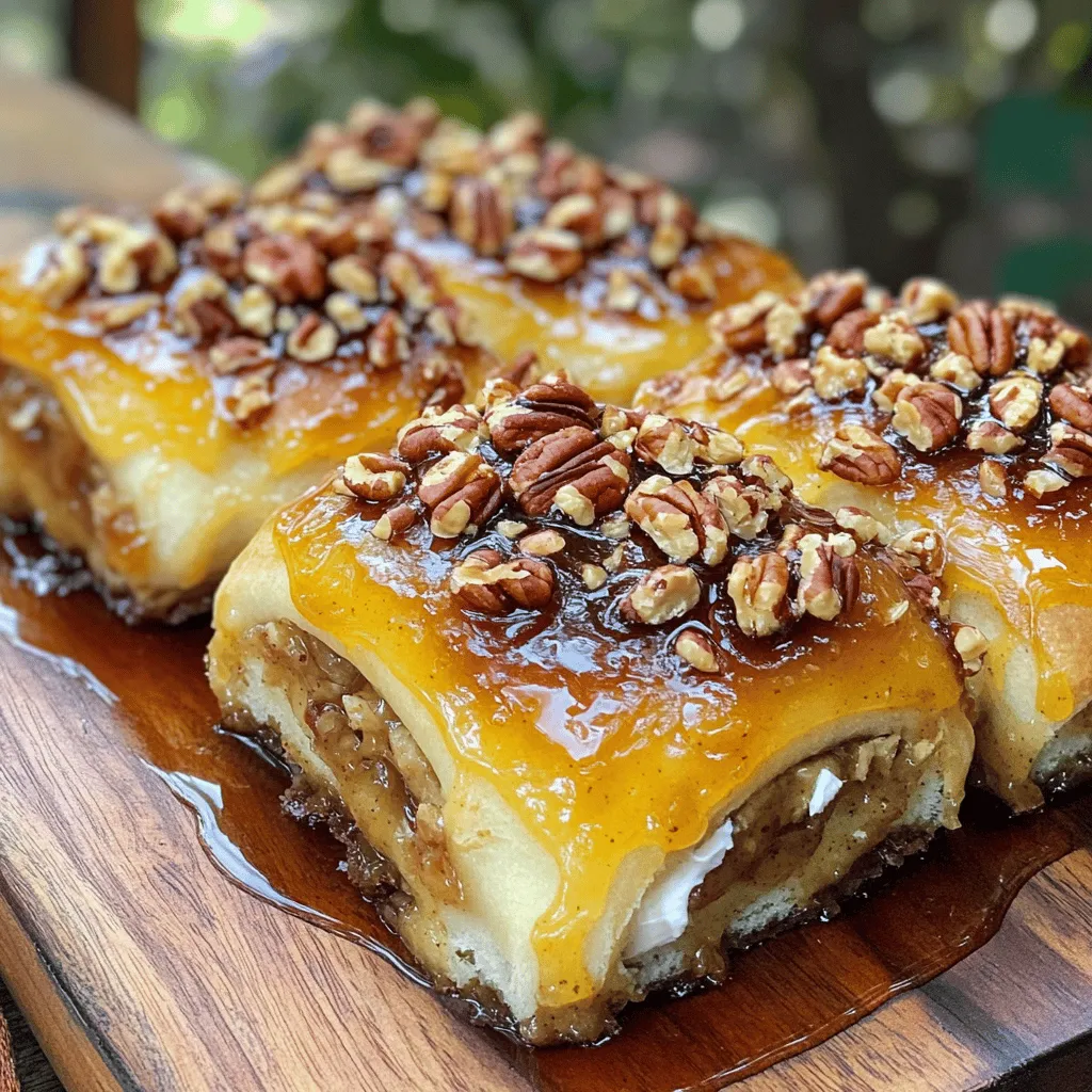 - 4 cups all-purpose flour - 1/4 cup granulated sugar - 1 packet (2 1/4 tsp) active dry yeast - 1 teaspoon salt - 1 cup whole milk, warmed to around 110°F (43°C) - 1/2 cup unsalted butter, melted and slightly cooled - 2 large eggs, room temperature - 1 teaspoon vanilla extract - 1 tablespoon ground cinnamon - 1 cup brown sugar, packed firmly - 1/2 cup maple syrup - 1 cup pecans, roughly chopped - 1/4 cup cream cheese, softened (for drizzling) Choosing the best flour Select all-purpose flour for its balance. It gives a nice texture and helps the buns rise well. Importance of fresh yeast Always check the date on your yeast. Fresh yeast makes the dough rise better and faster. Selecting high-quality maple syrup Use pure maple syrup for the best flavor. Look for a rich color and strong aroma to enhance your sticky buns. To start, warm the milk until it feels like a cozy bath, around 110°F. In a big bowl, mix the warm milk with granulated sugar and active dry yeast. Wait about five minutes. You want the mixture to look frothy. This means the yeast is happy and ready to rise. Next, add melted butter, eggs, and vanilla extract to the frothy mix. Whisk everything together until it’s smooth. Now, in a separate bowl, whisk together all-purpose flour and salt. Gradually add this dry mix to your wet ingredients. Use a wooden spoon or dough hook to stir until a soft dough forms. It should feel slightly sticky. Next, transfer the dough to a floured surface. Knead the dough for about 5-10 minutes. You want it to become smooth and elastic. Once it feels right, shape it into a ball. Place it in a greased bowl, cover it, and let it rise in a warm spot for about an hour, or until it doubles in size. After the dough has risen, gently punch it down to release air. Roll it out on a floured surface into a rectangle about 1/4 inch thick. Evenly sprinkle packed brown sugar, ground cinnamon, and chopped pecans over the dough. Starting from one long side, roll the dough tightly into a log shape. Use a sharp knife or dental floss to cut the log into 12 equal pieces. Arrange the pieces in a greased baking dish with the cut sides facing up. In a small saucepan over low heat, mix the maple syrup and remaining melted butter. Stir gently and simmer for about 2-3 minutes. Pour this warm maple mixture into the bottom of the baking dish. Add more chopped pecans on top. Cover the dish with a towel and let the buns rise for another 30 minutes. Meanwhile, preheat your oven to 350°F. Bake the buns for 25-30 minutes or until they turn golden brown and bubbly. After baking, let them cool in the dish for a few minutes. Then, flip the pan onto a plate to let the sticky topping drizzle down. Finally, drizzle softened cream cheese on top or serve it on the side for dipping. To get fluffy buns, use warm milk. This helps activate the yeast. Knead the dough until it's smooth and elastic. This step is key for a light texture. You can also add a bit more flour if the dough feels too sticky. To boost the maple flavor, use high-quality maple syrup. You can also add a pinch of salt. This enhances the sweetness and makes the flavor pop. Try adding a splash of vanilla for extra warmth. Don't over-knead the dough. This makes it tough instead of soft. Keep an eye on your kneading time. Aim for about 5-10 minutes. Make sure to allow the dough to rise properly. If you rush this step, the buns won't puff up. Let them rise in a warm spot until they double in size. For mixing, use a sturdy stand mixer or a large bowl. A wooden spoon works well too. This ensures that the dough mixes evenly. Choose a glass or metal baking dish for even heat. A 9x13 inch pan is ideal for these buns. It helps them cook evenly and become perfectly golden. {{image_4}} You can change the flavor of your sticky buns easily. Adding spices like nutmeg or ginger gives a warm taste. These spices pair well with the sweet maple flavor. You can also mix in dried fruits like raisins or cranberries. They add a chewy texture and a burst of sweetness. Try different combinations to find your favorite blend. Switching up the toppings can make your sticky buns unique. Instead of cream cheese, use other frostings like vanilla or maple glaze. Each frosting brings its own charm. You can also try different nuts, like walnuts or almonds, for added crunch. These small changes can lead to big flavor surprises. If you need gluten-free options, use a gluten-free flour mix. Many brands work well in baking. For dairy-free alternatives, swap the butter and milk for plant-based options. Coconut milk and vegan butter are great choices. These adaptations allow everyone to enjoy these tasty treats. To keep your sticky buns fresh, place them in an airtight container. Use a glass or plastic container that seals well. This will help maintain their soft texture and delicious flavor. If you don’t have a container, wrap the buns in plastic wrap. Store them at room temperature for up to two days. For longer storage, you can refrigerate them. Just be aware that refrigeration may dry them out a bit. To bring back the fresh taste of your sticky buns, use a few simple methods. You can reheat them in the oven. Wrap the buns in foil and bake at 350°F (175°C) for about 10-15 minutes. This keeps them warm and soft. If you prefer, you can use the microwave. Place a bun on a plate, cover it with a damp paper towel, and heat for about 15-20 seconds. Serving them warm adds to the taste. The gooey maple topping will shine when they are hot. However, if you enjoy them at room temperature, that works too! Just be sure to store them well so they maintain their flavor. To activate yeast, mix it with warm milk and sugar. The milk should be around 110°F (43°C). Let it sit for five minutes. You will see bubbles forming. This means the yeast is active and ready to use. Yes, you can make the dough ahead of time. After kneading, place it in a bowl and cover it. Store it in the fridge for up to 24 hours. When ready, let it 